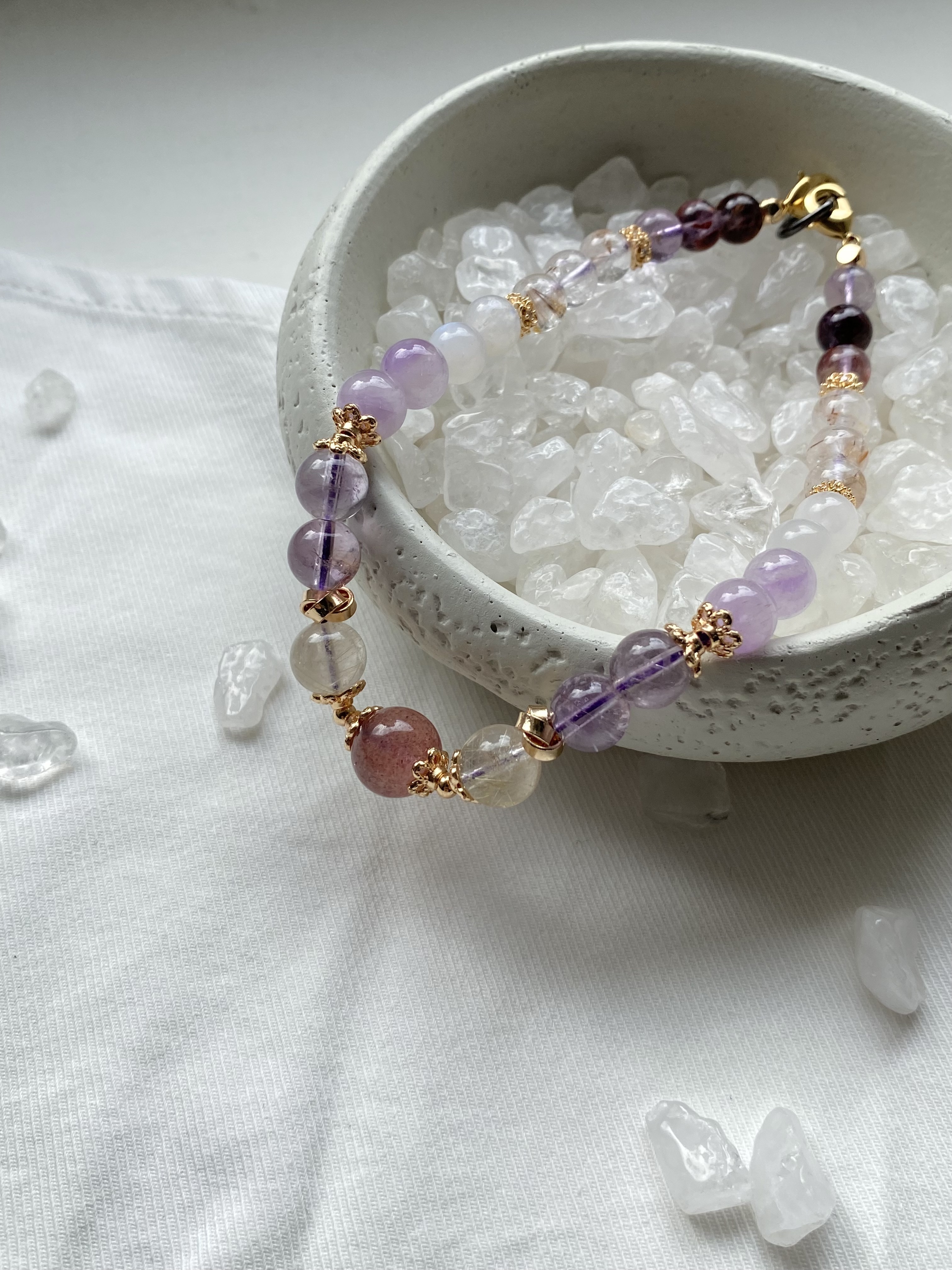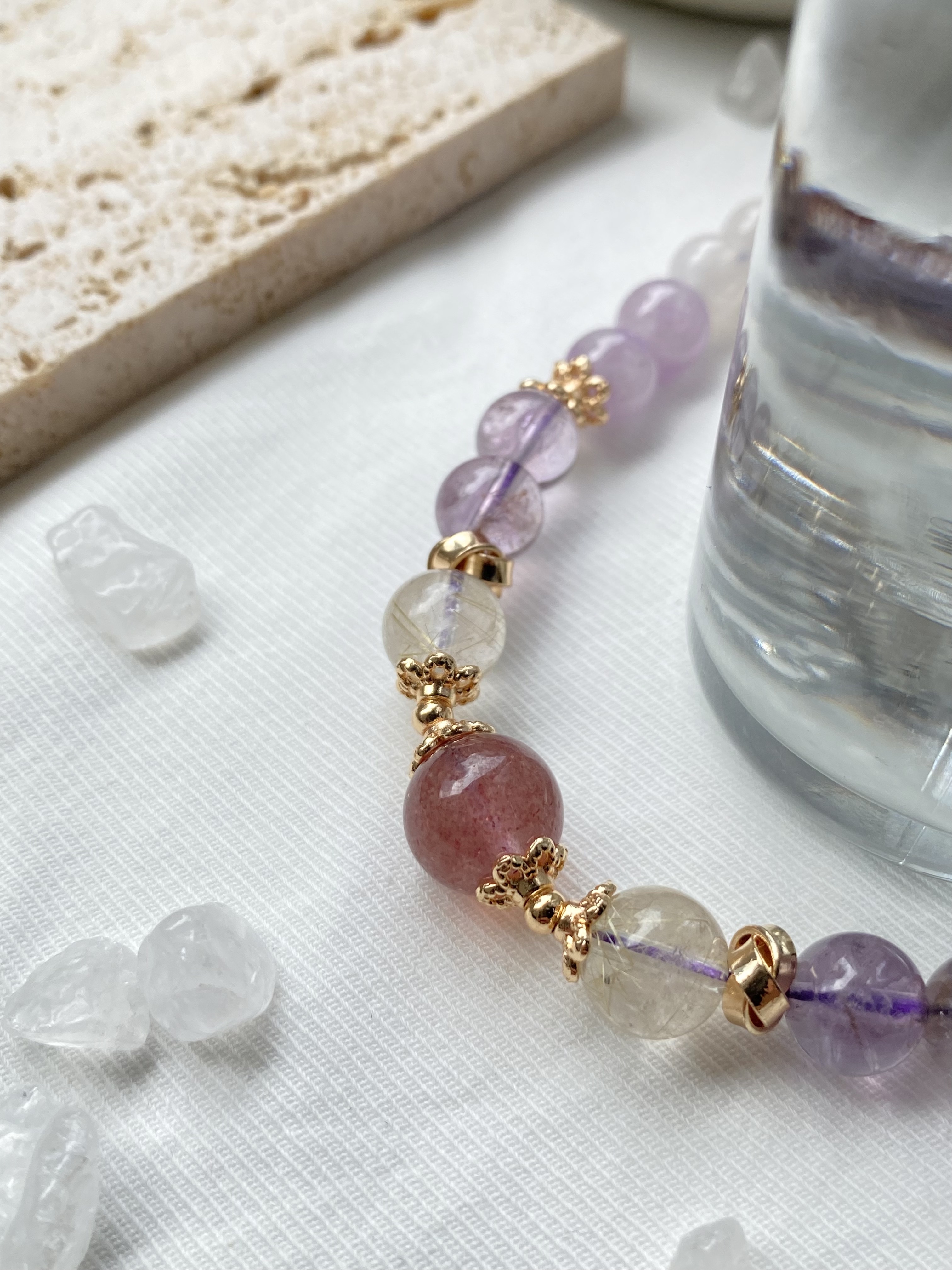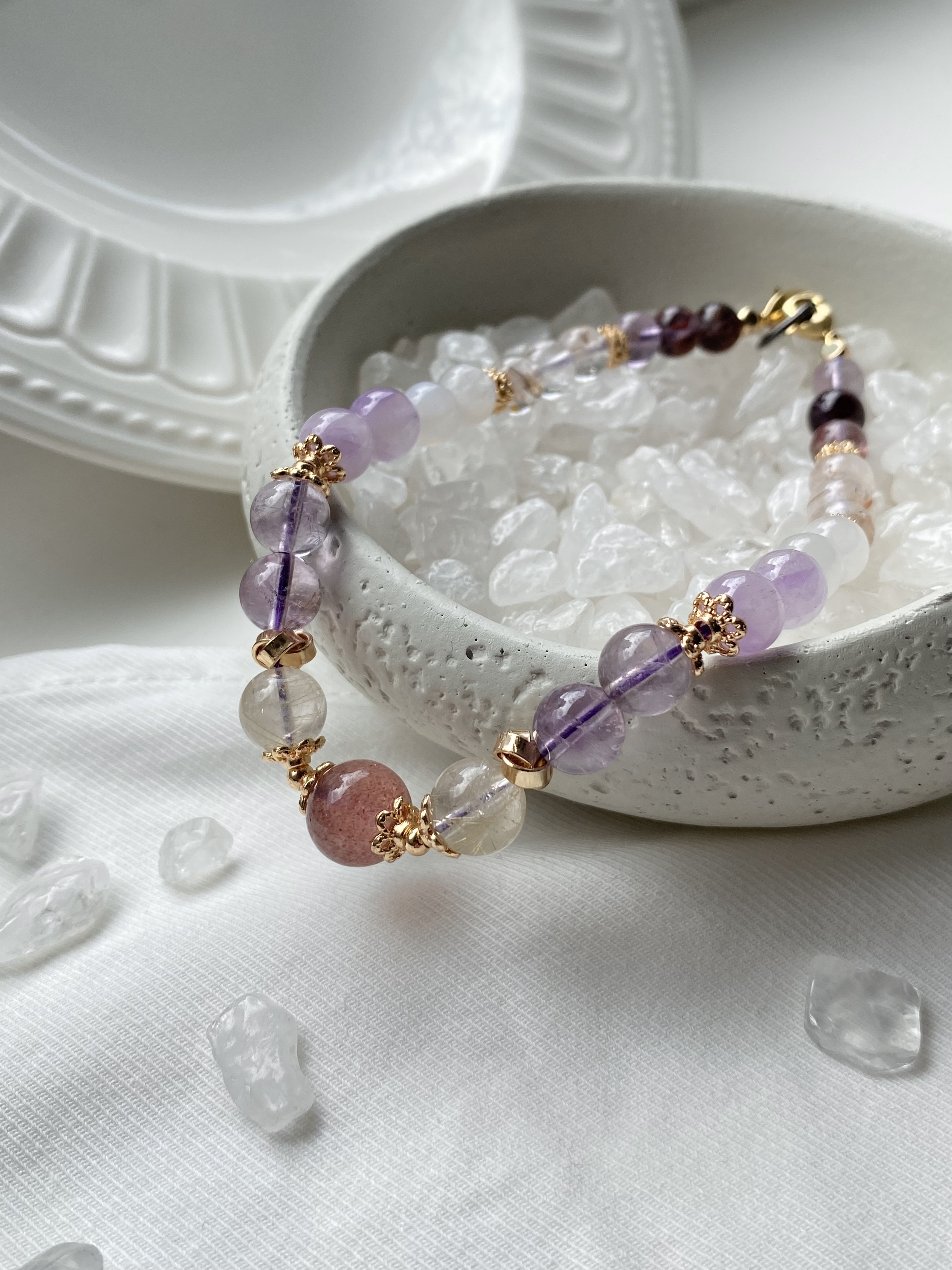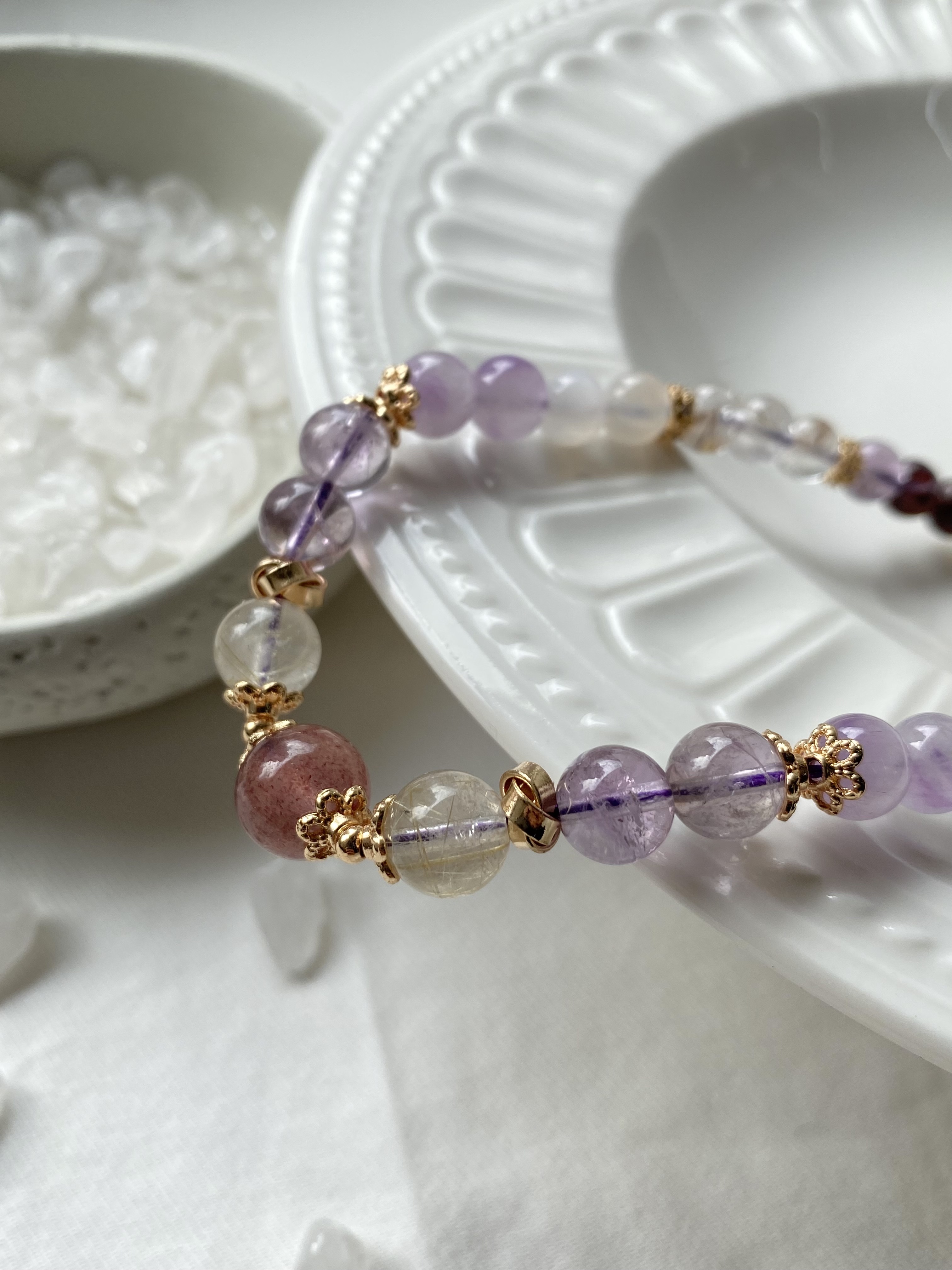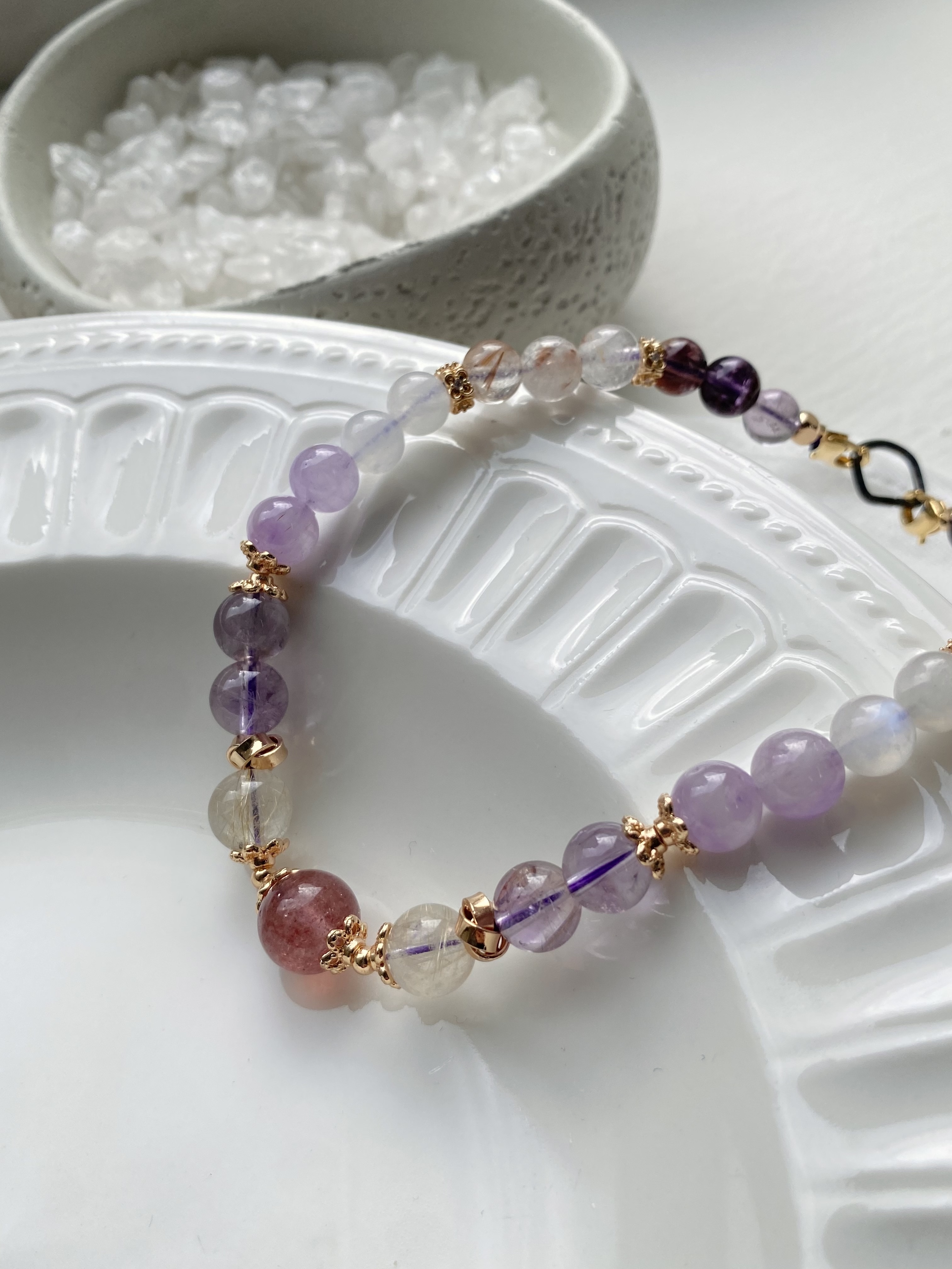 材質: 紫幽靈 / 紫鈦 / 紫玉 / 紫水晶 / 白髮晶 / 草莓晶 /