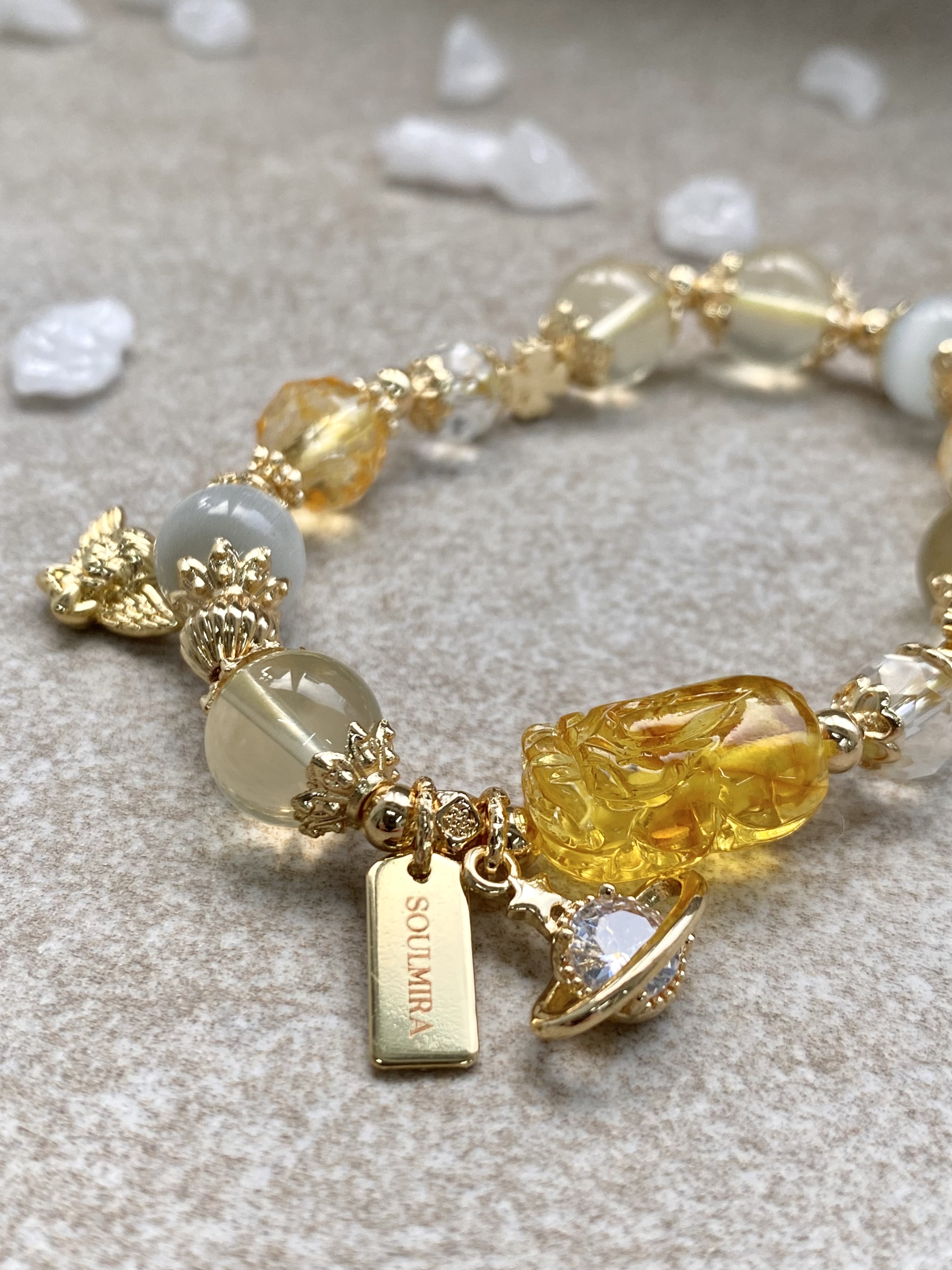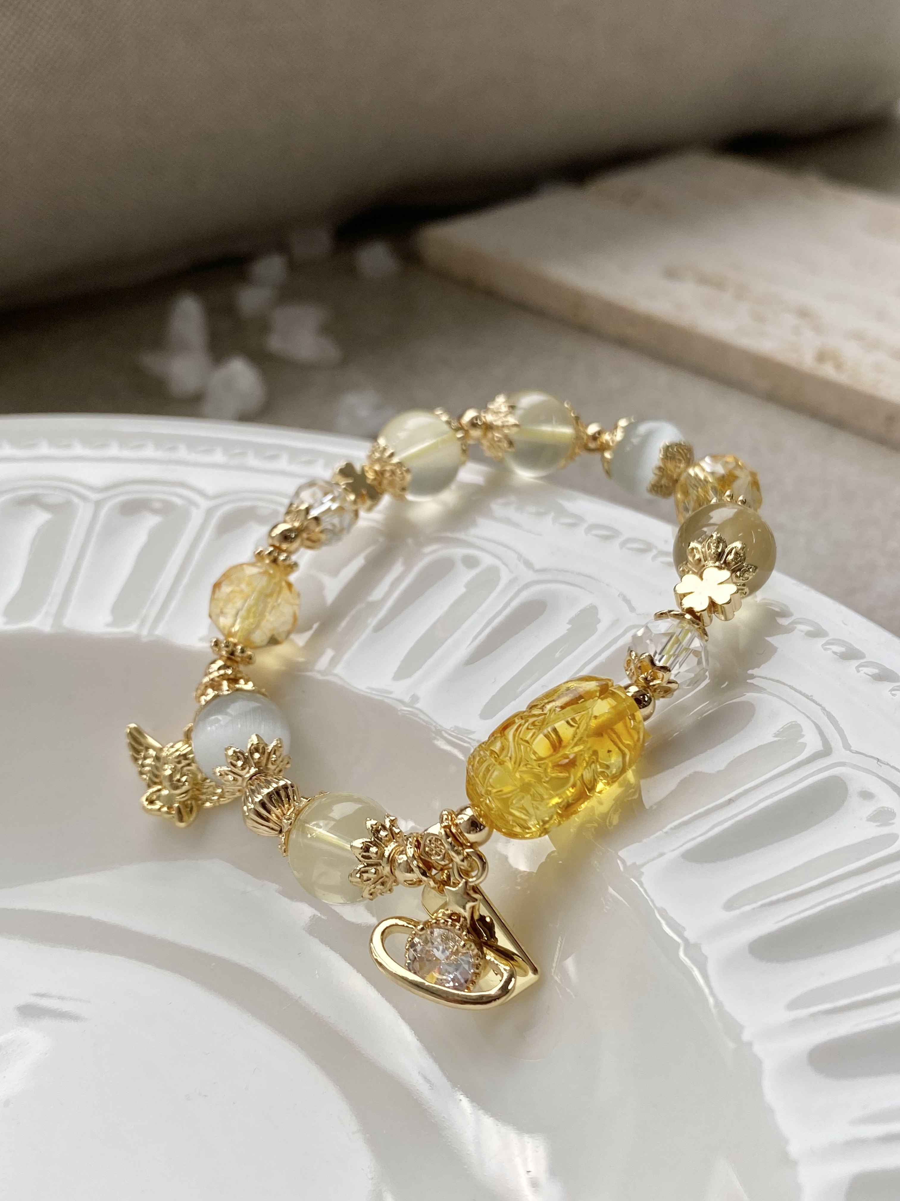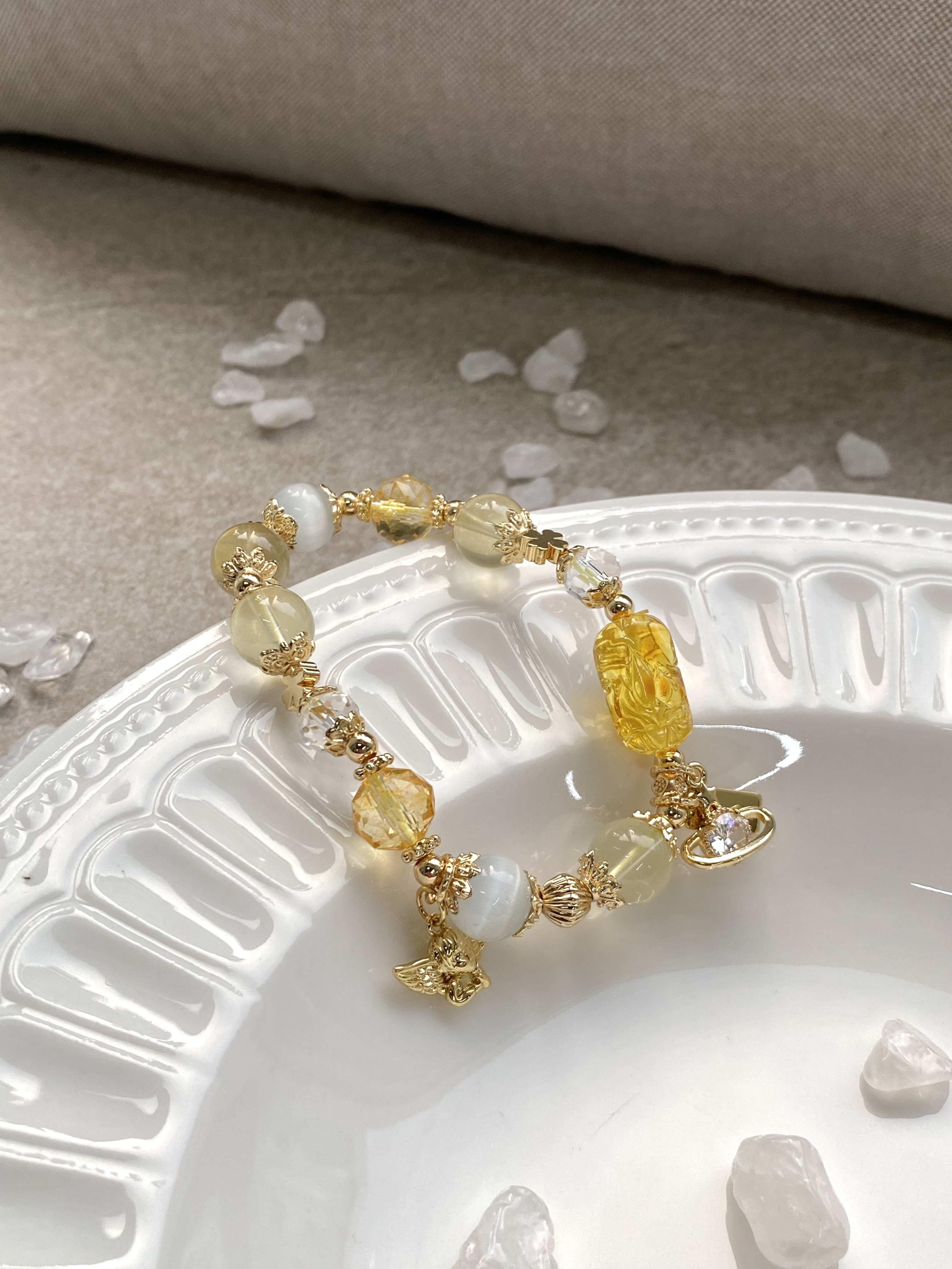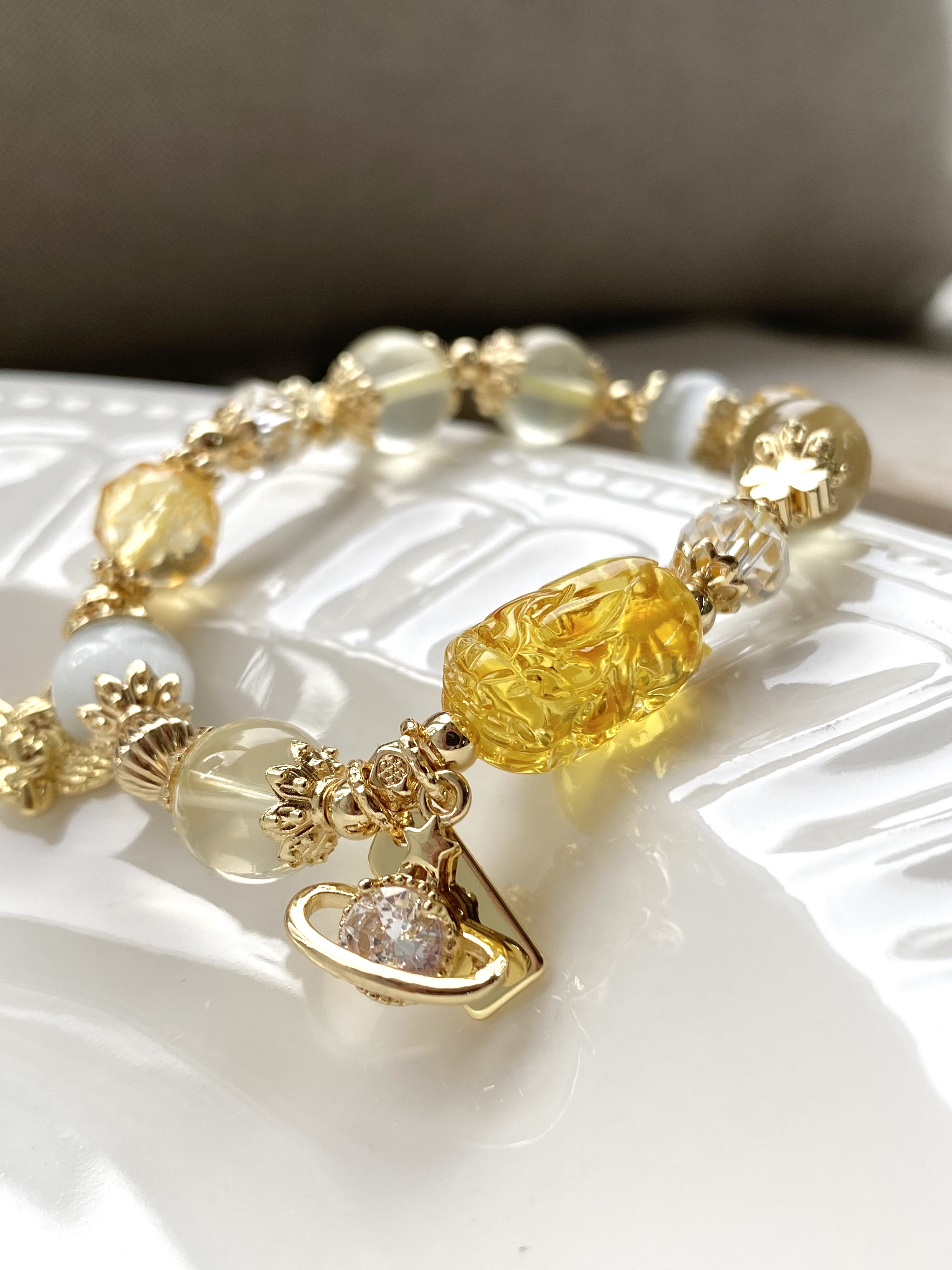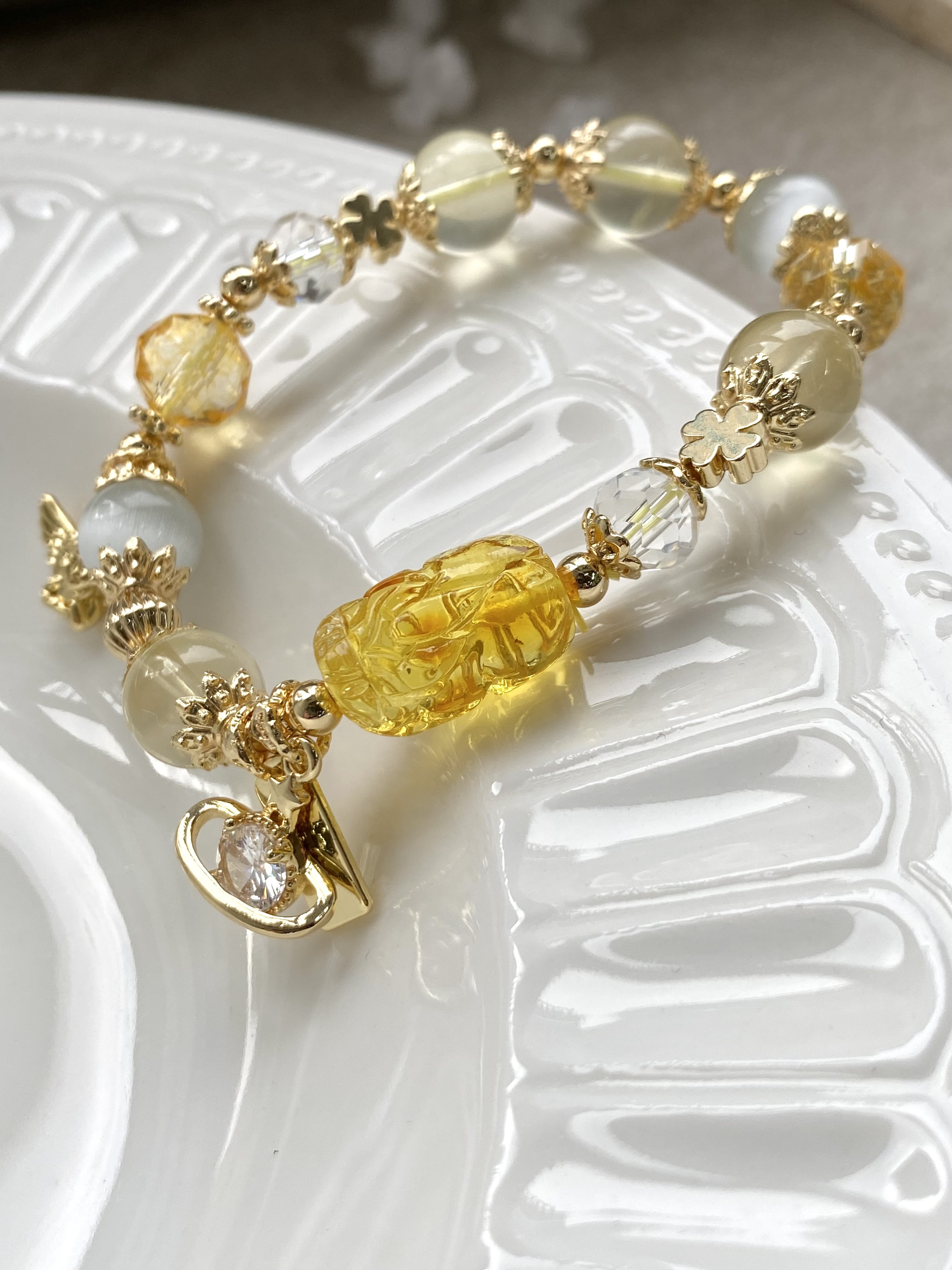材質:蜜蠟貔貅 / 7A黃水晶 / 黃塔晶 / 貓眼石 / 白水晶 / 黃水晶