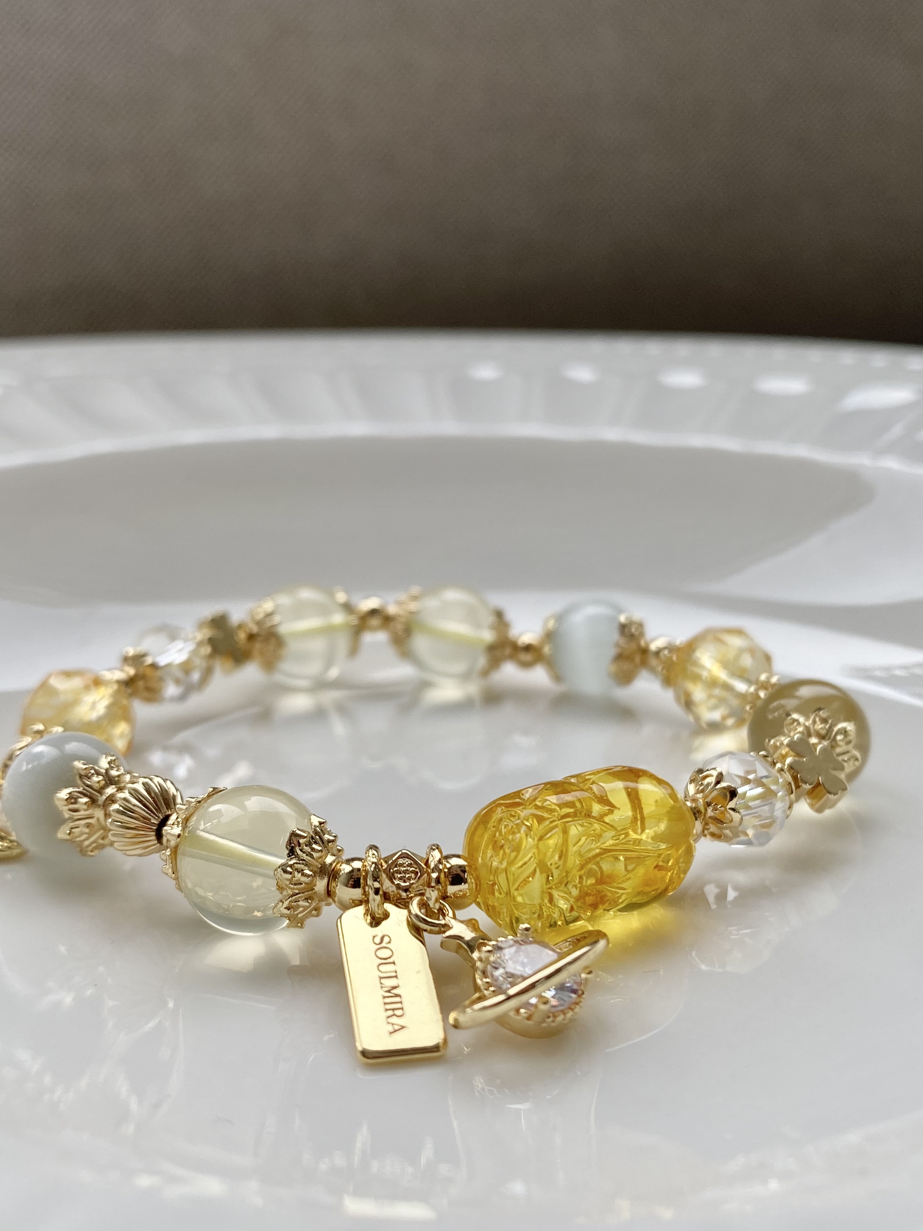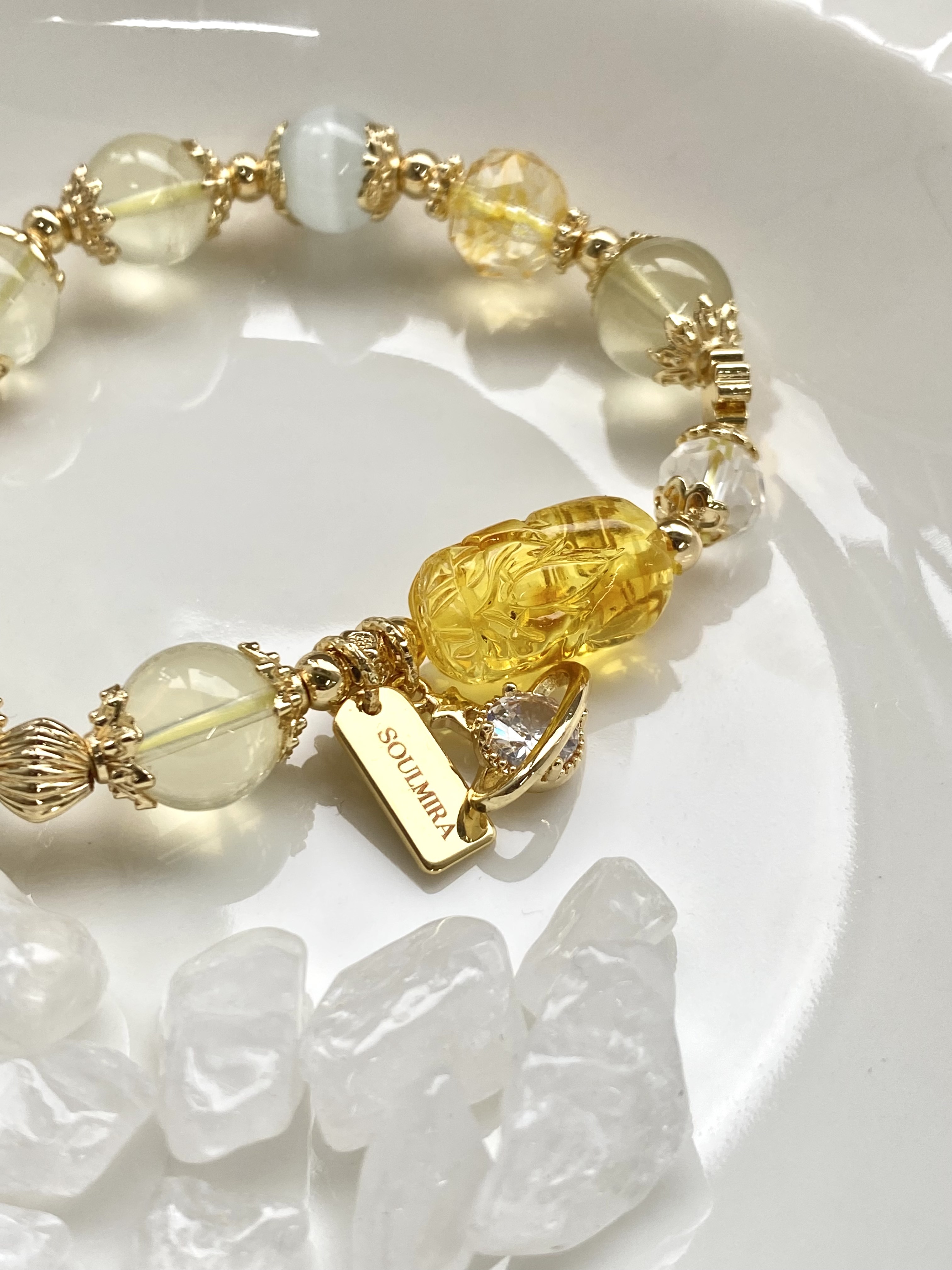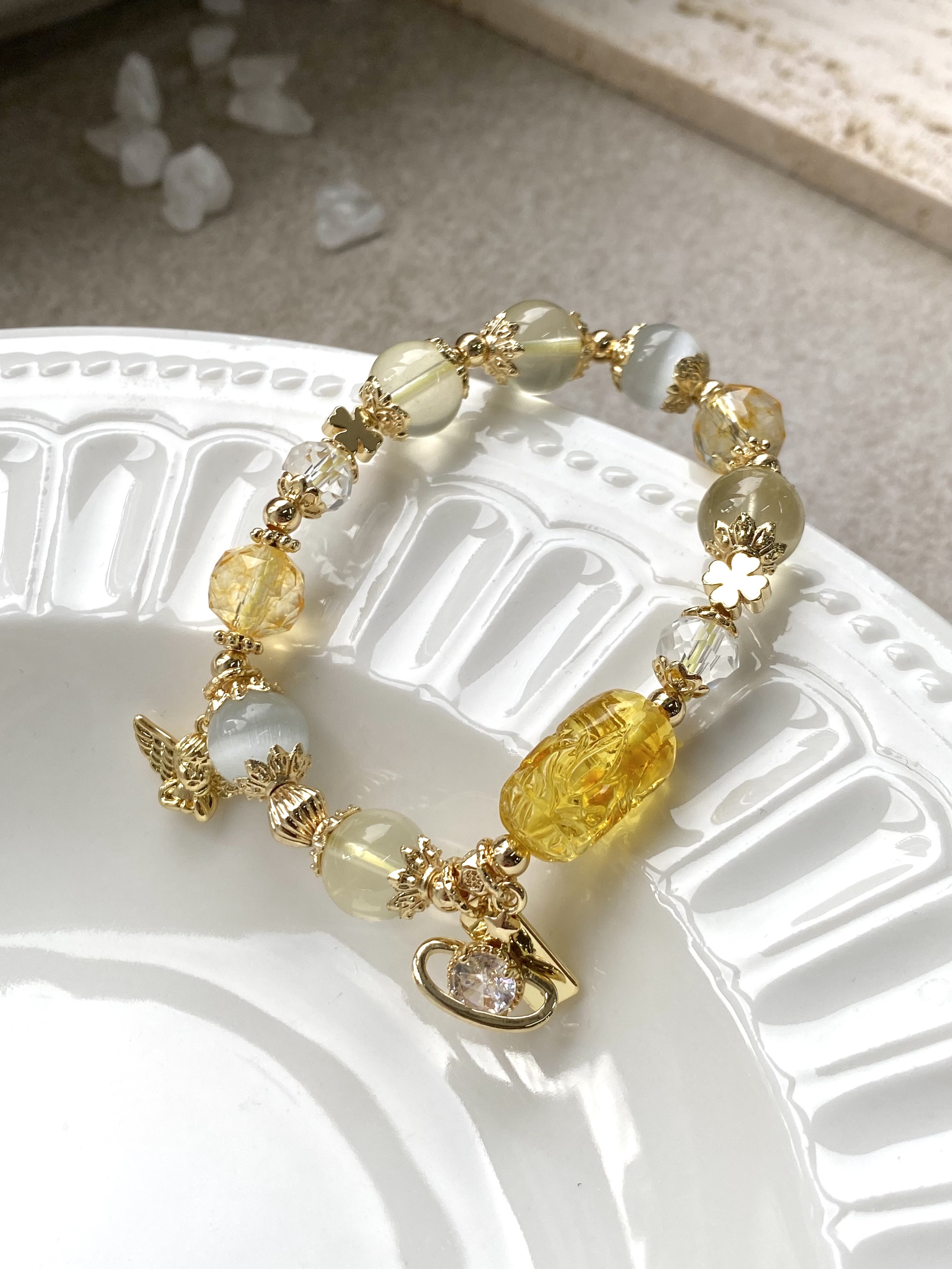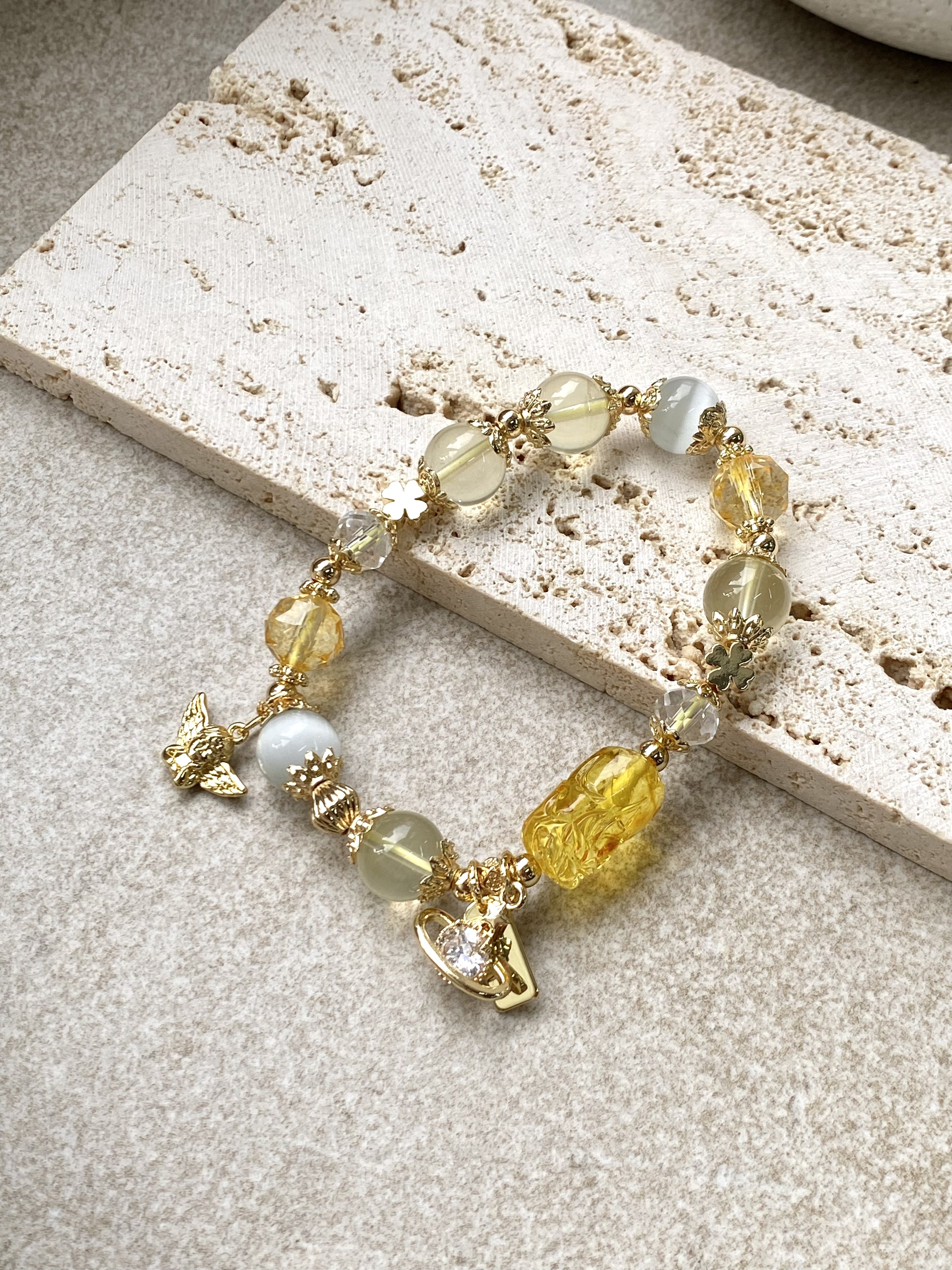 材質:蜜蠟貔貅 / 7A黃水晶 / 黃塔晶 / 貓眼石 / 白水晶 / 黃水晶