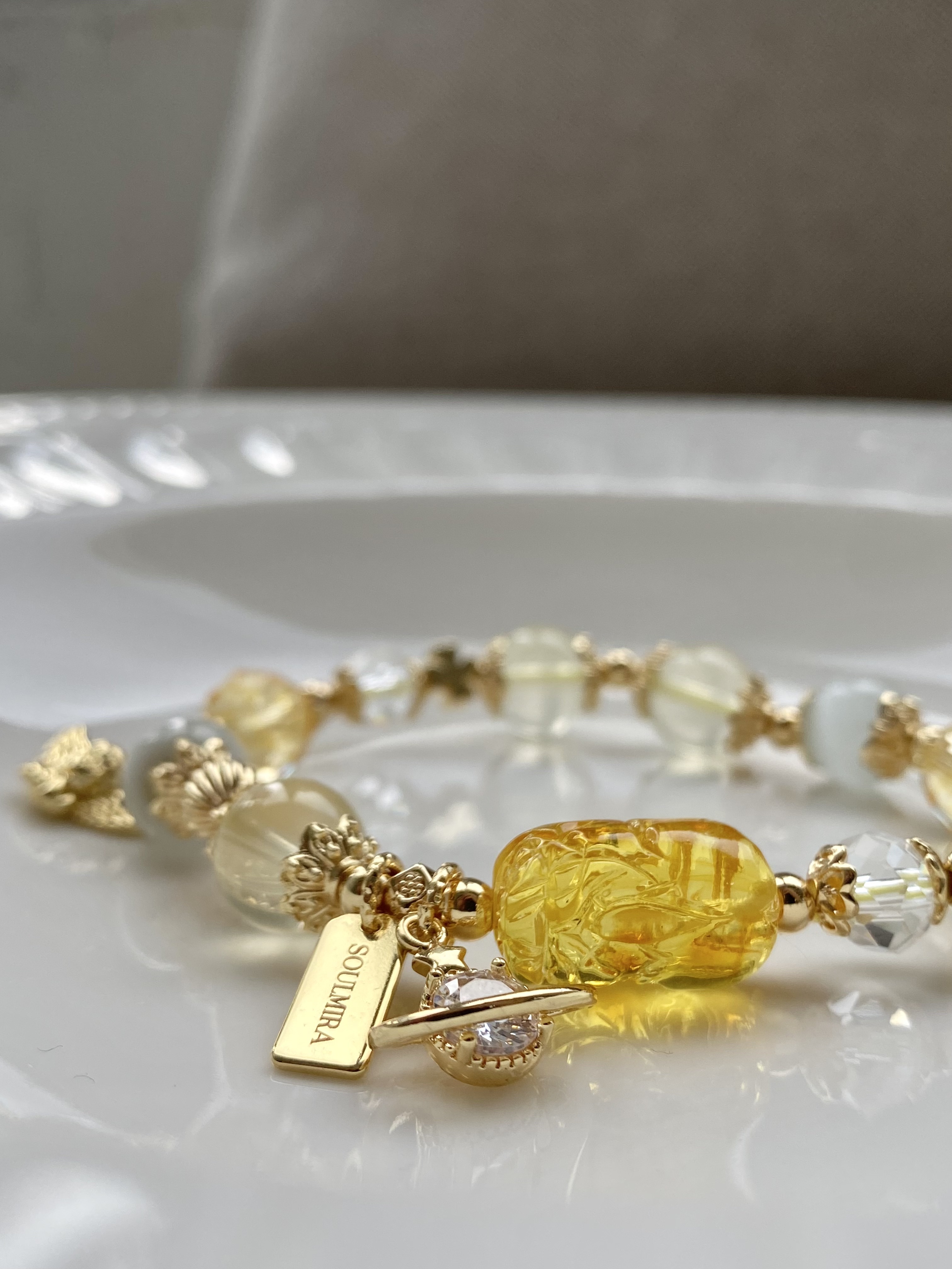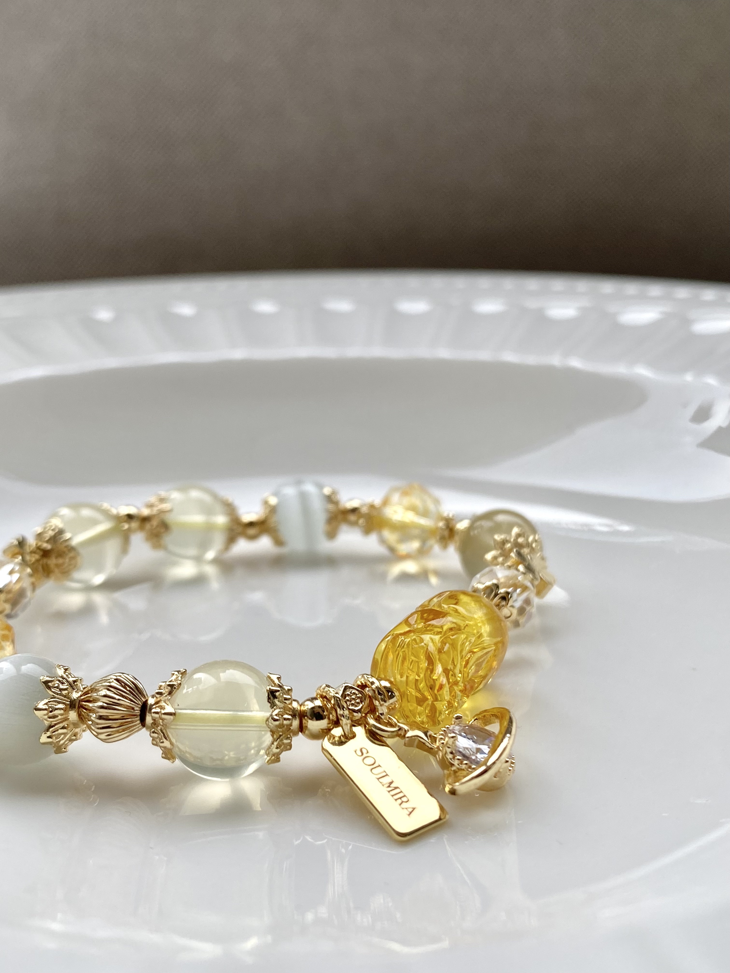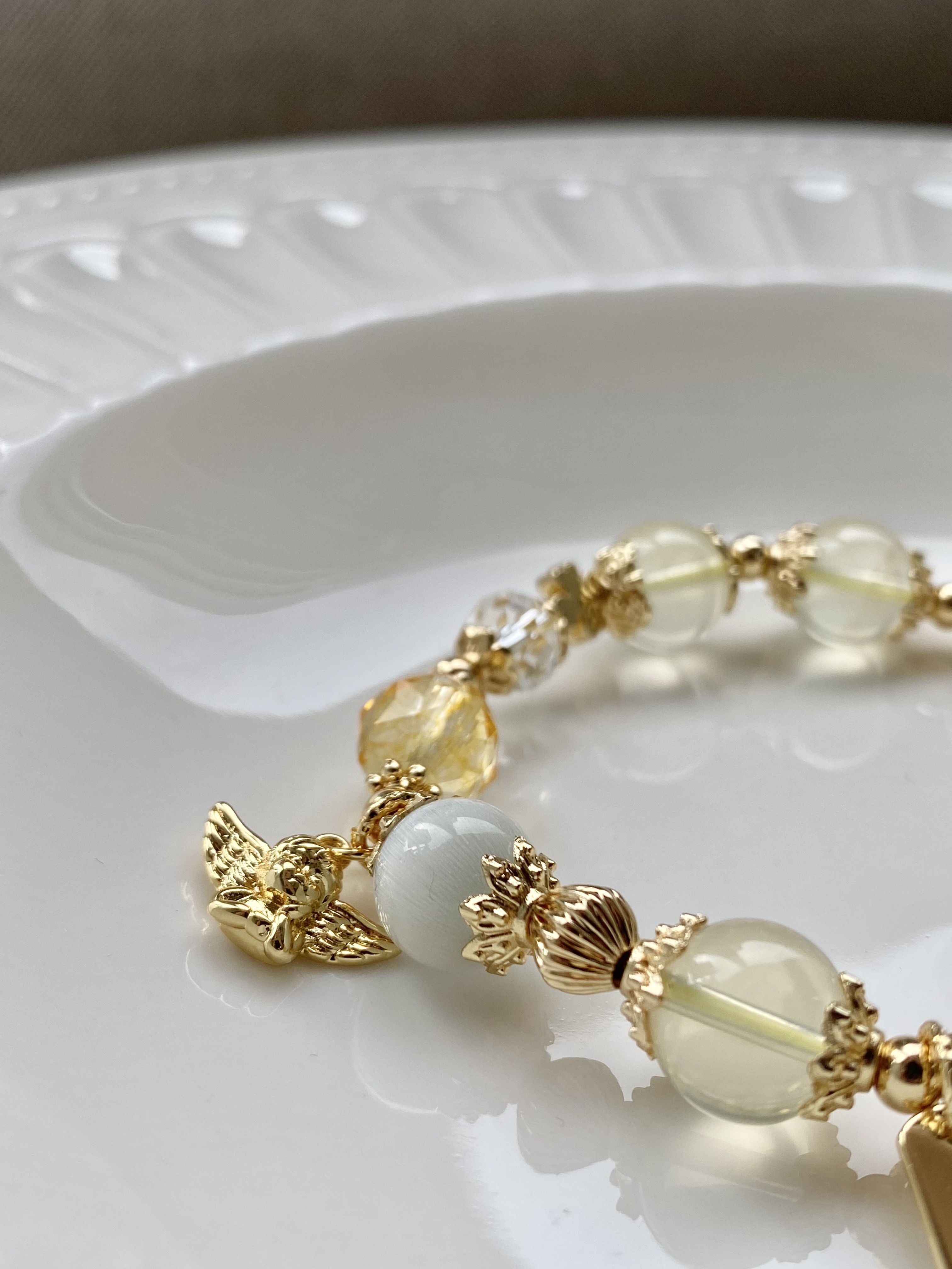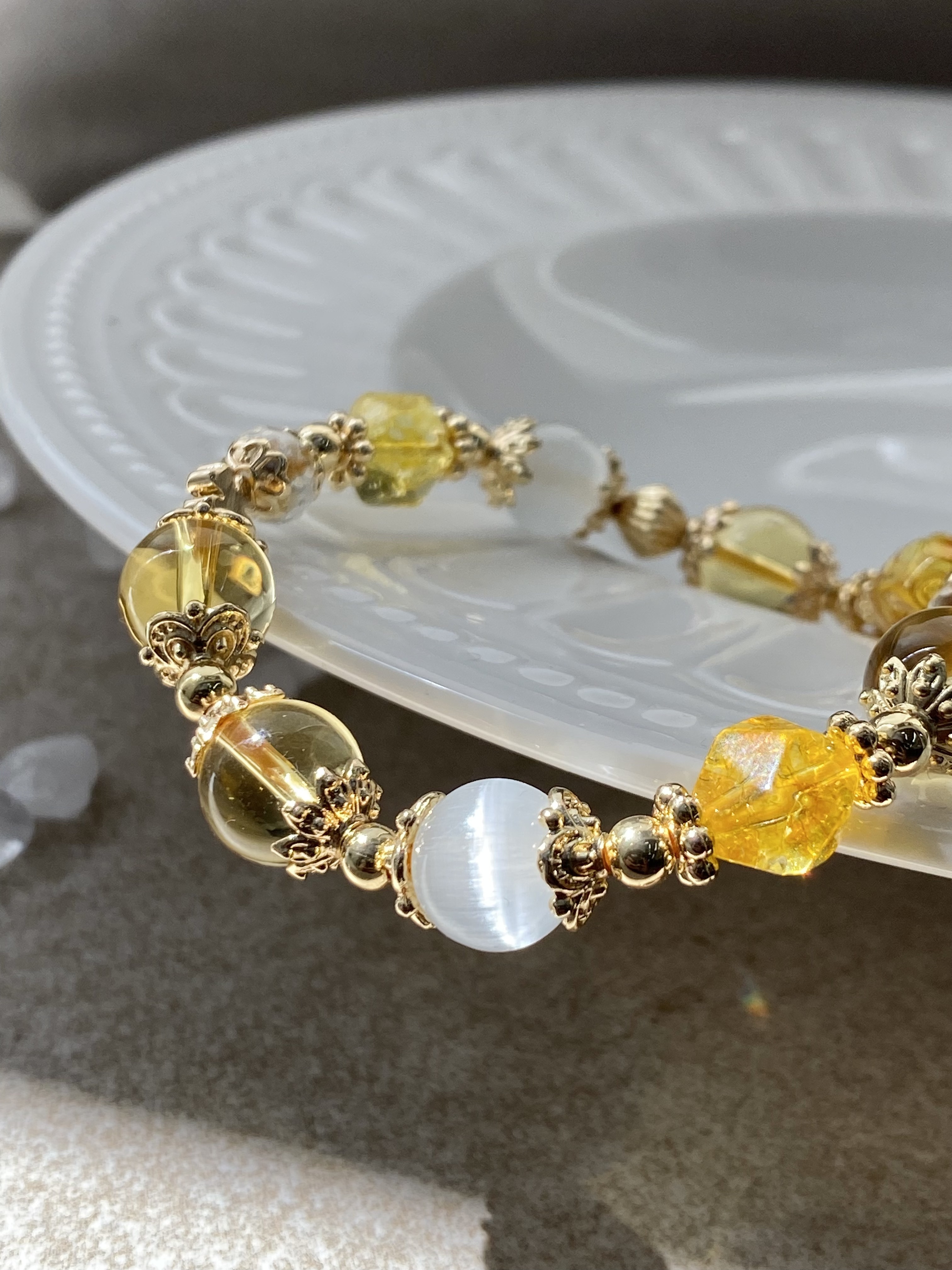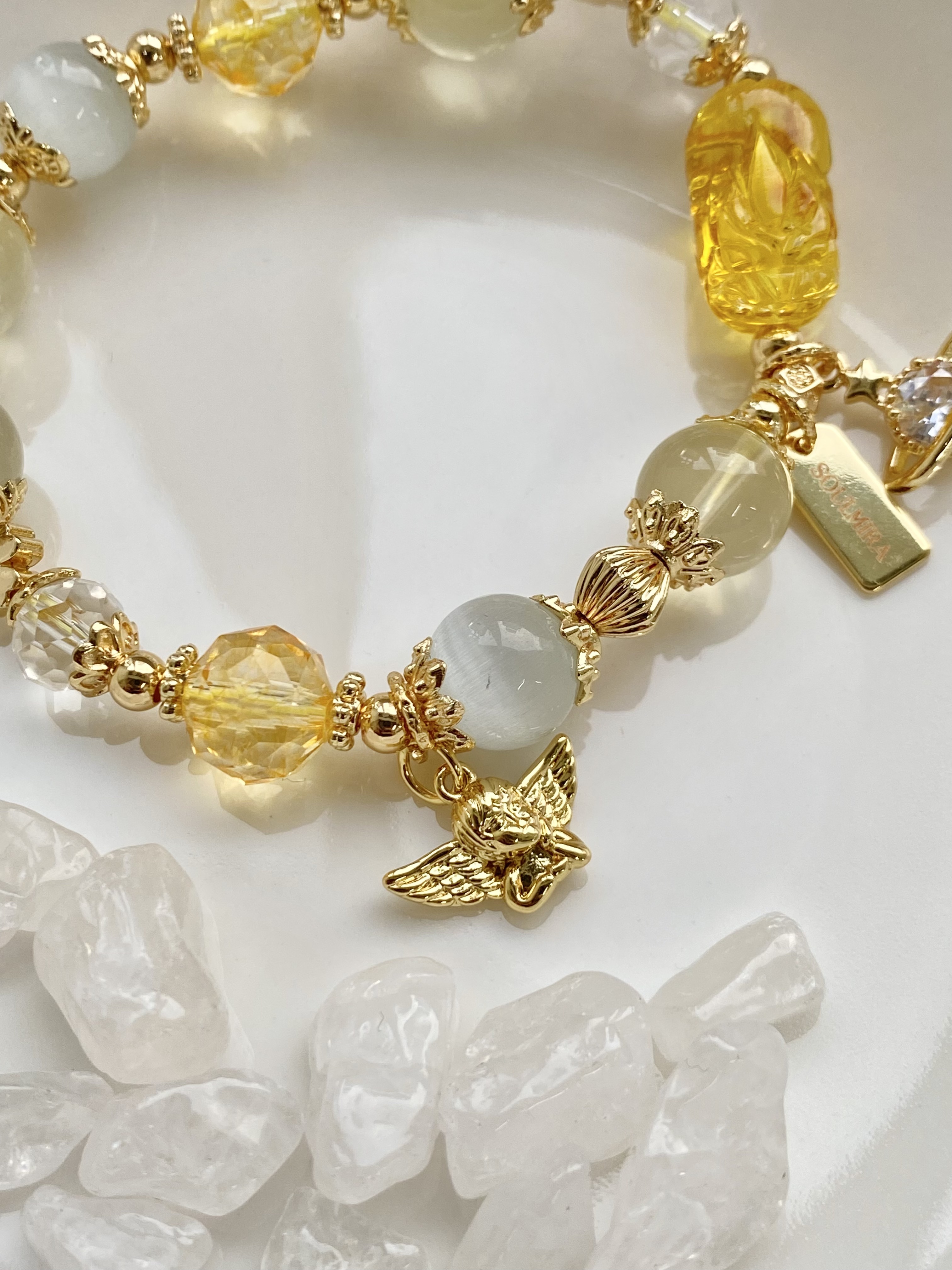 材質:蜜蠟貔貅 / 7A黃水晶 / 黃塔晶 / 貓眼石 / 白水晶 / 黃水晶