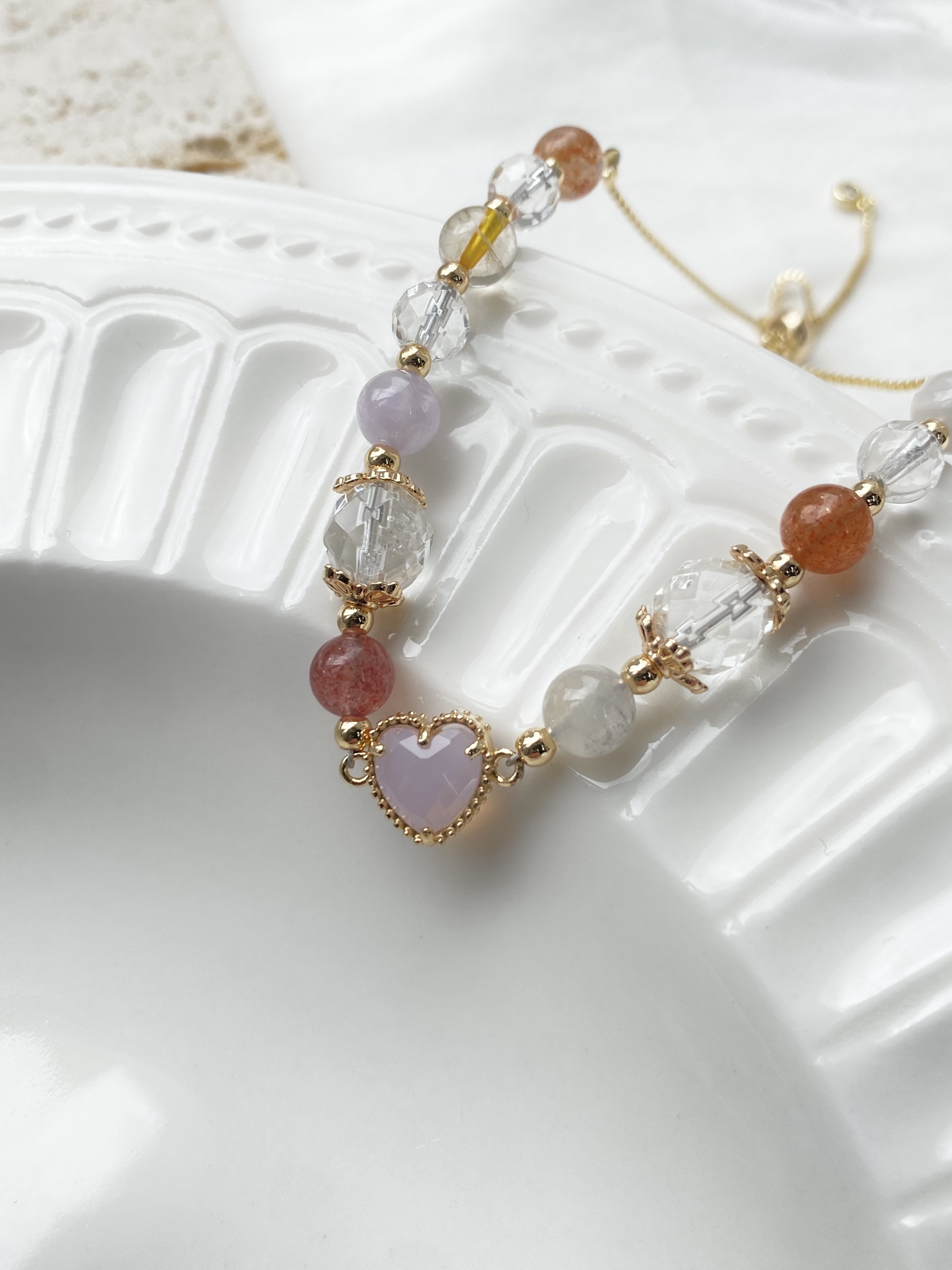 材質: 薰衣草紫玉 / 白水晶 / 金點草莓 / 紫水晶 / 鋯石 / 粉晶 / 金髮金 / 草莓金