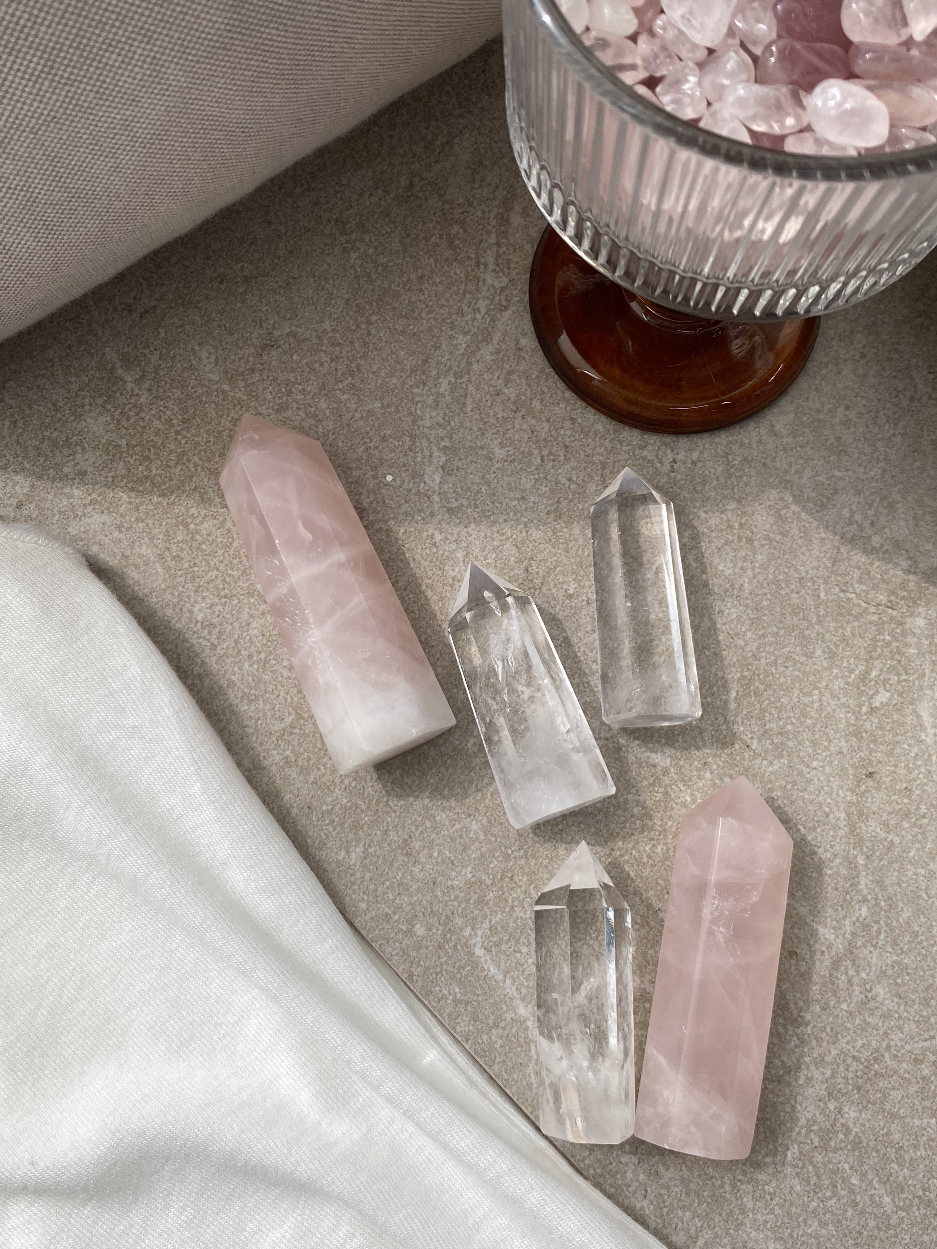 主石配置:粉水晶150g、紫瑪粉40g、水晶柱×3(粉色×1、白色×2)
