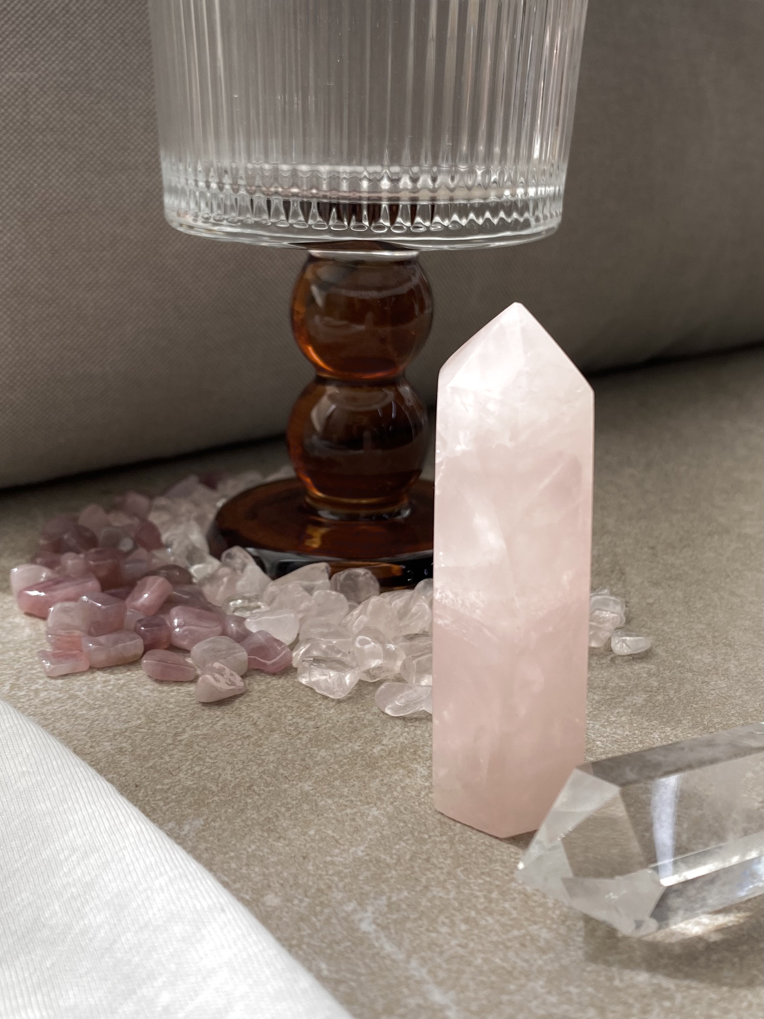 主石選用高頻粉水晶,溫柔開啟心輪、提升自我價值感與情感吸引力,