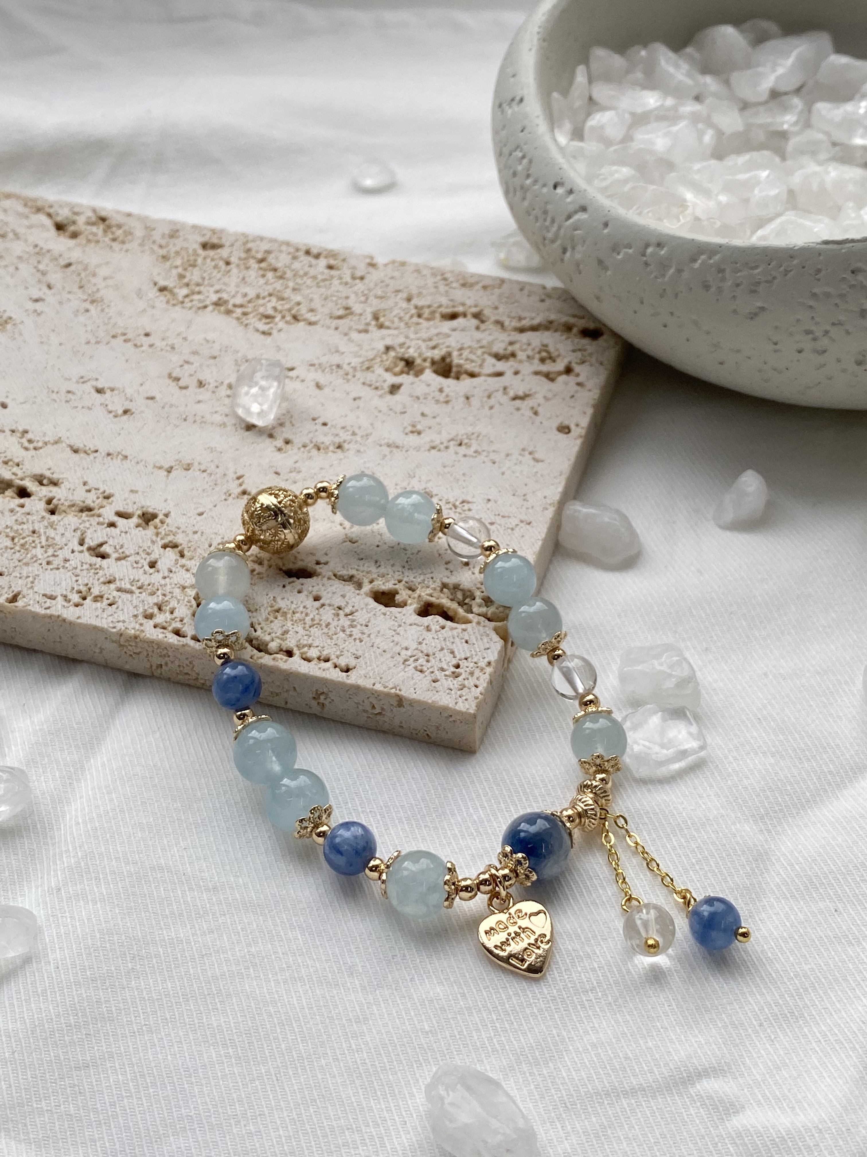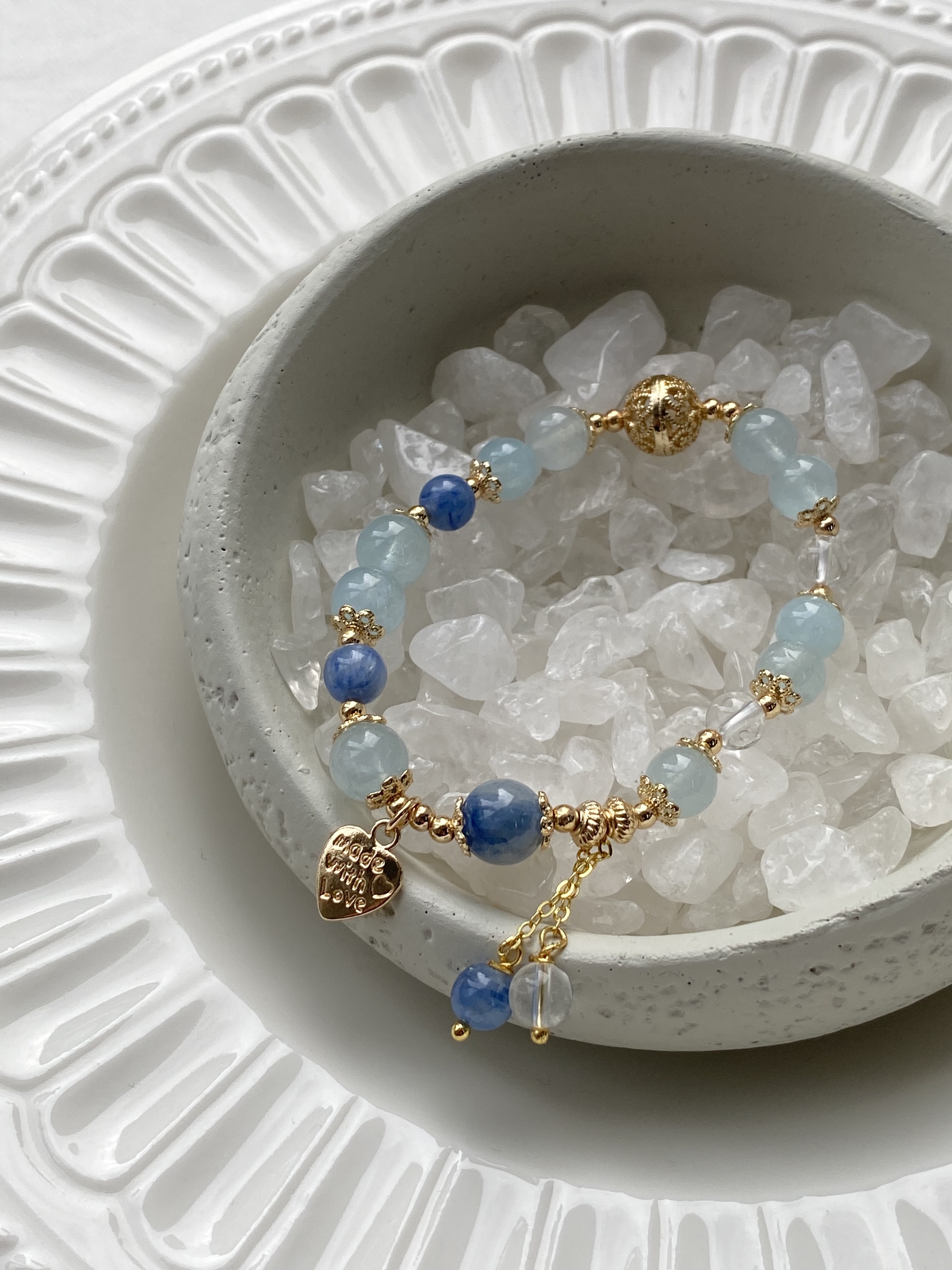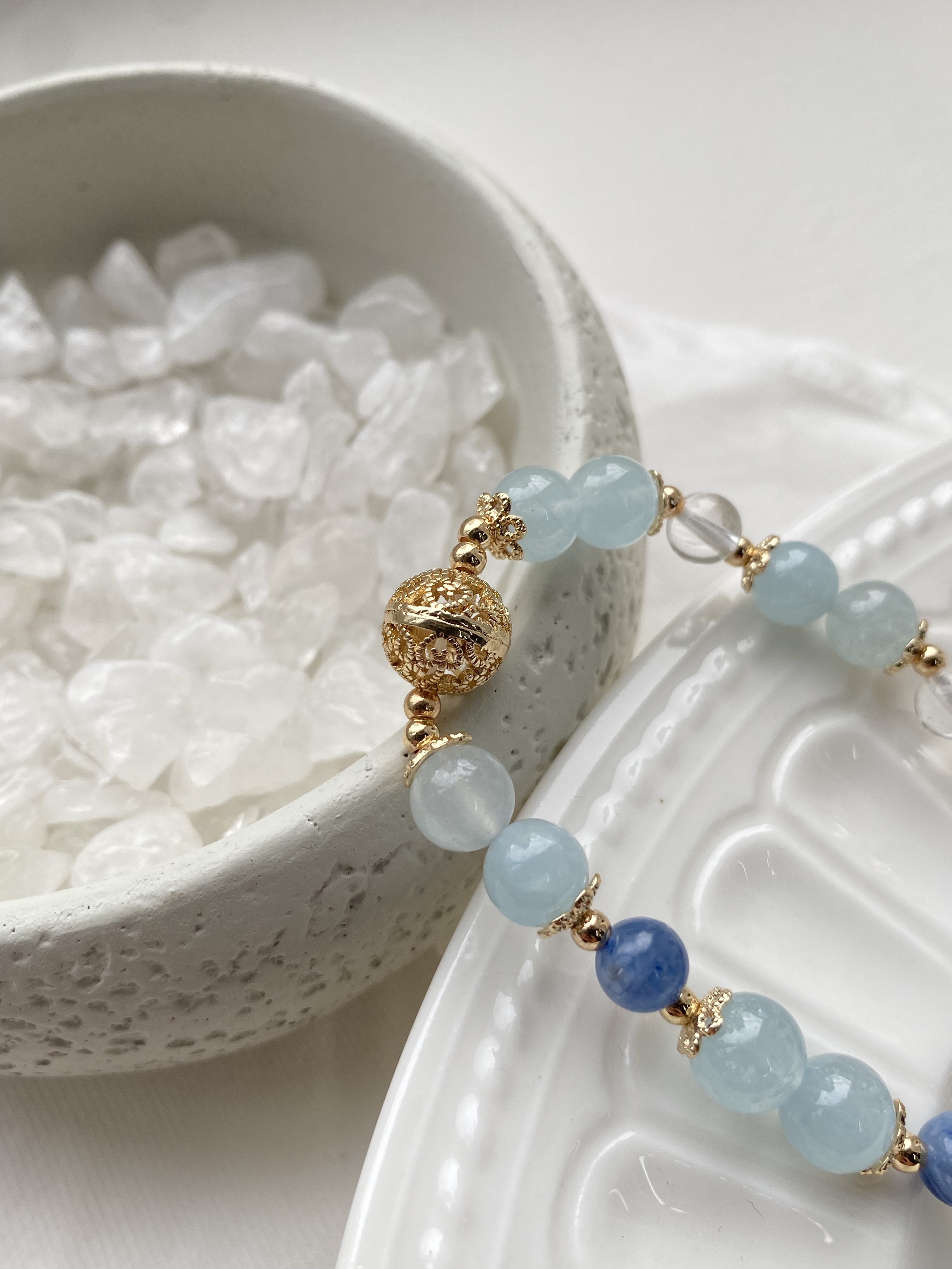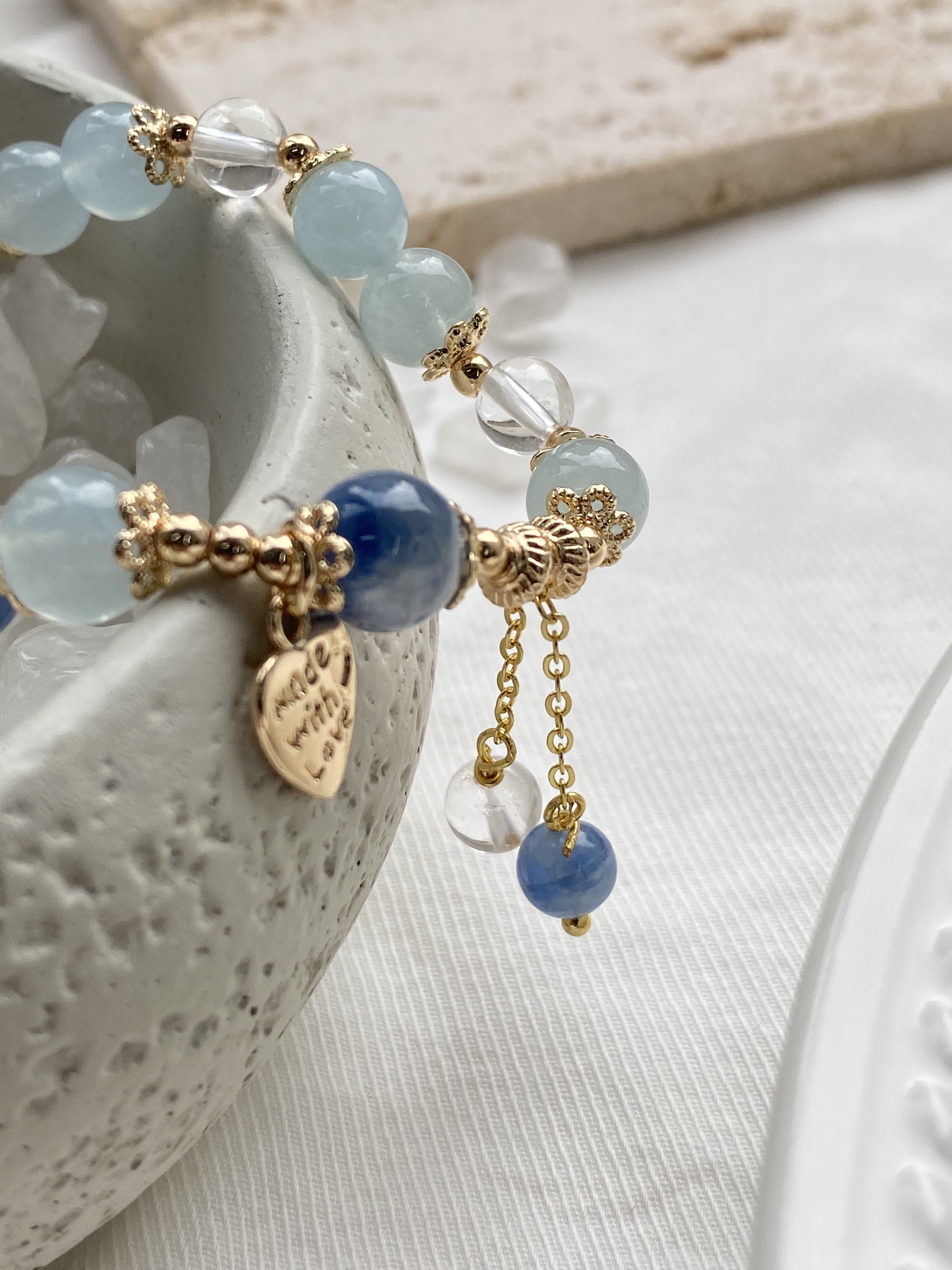 材質: 海藍寶雲霧 / 白水晶 / 藍晶石雲霧