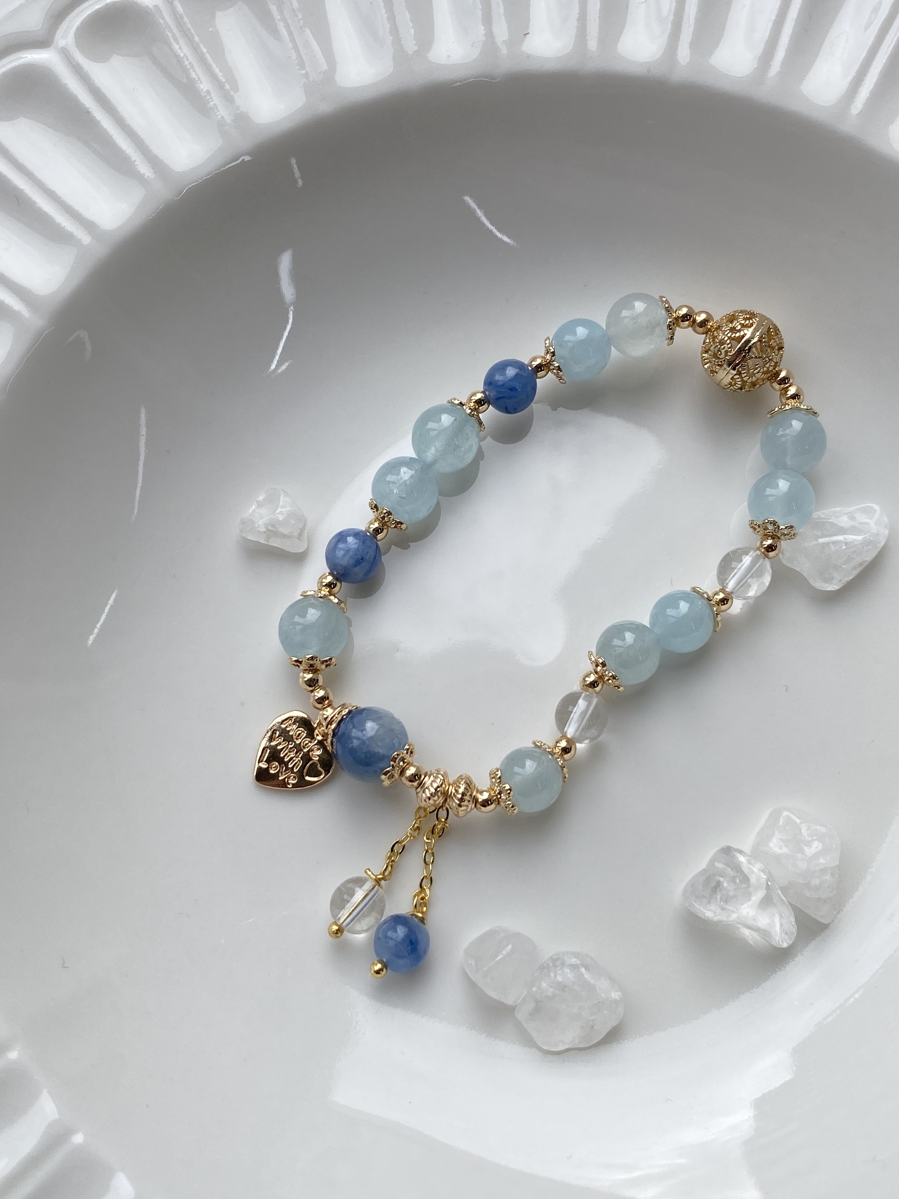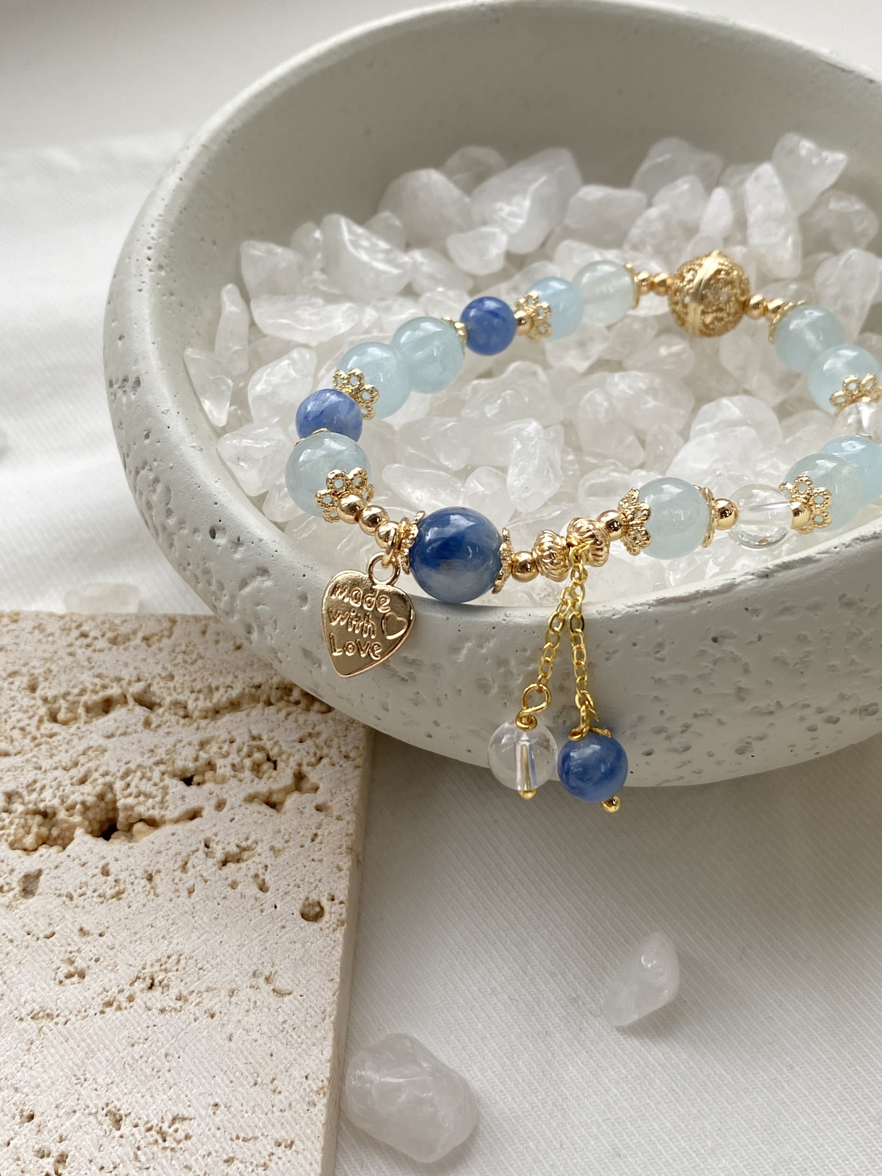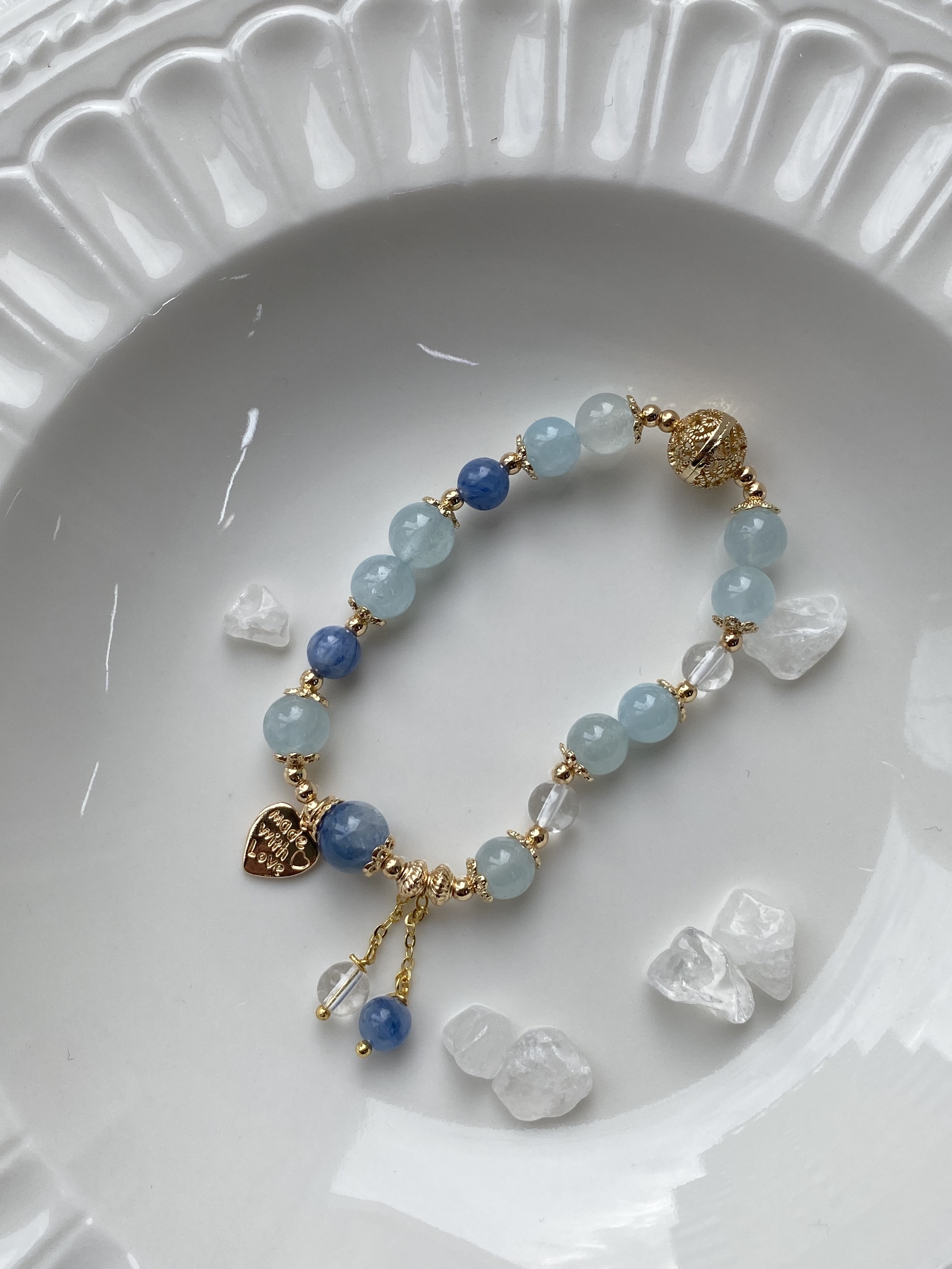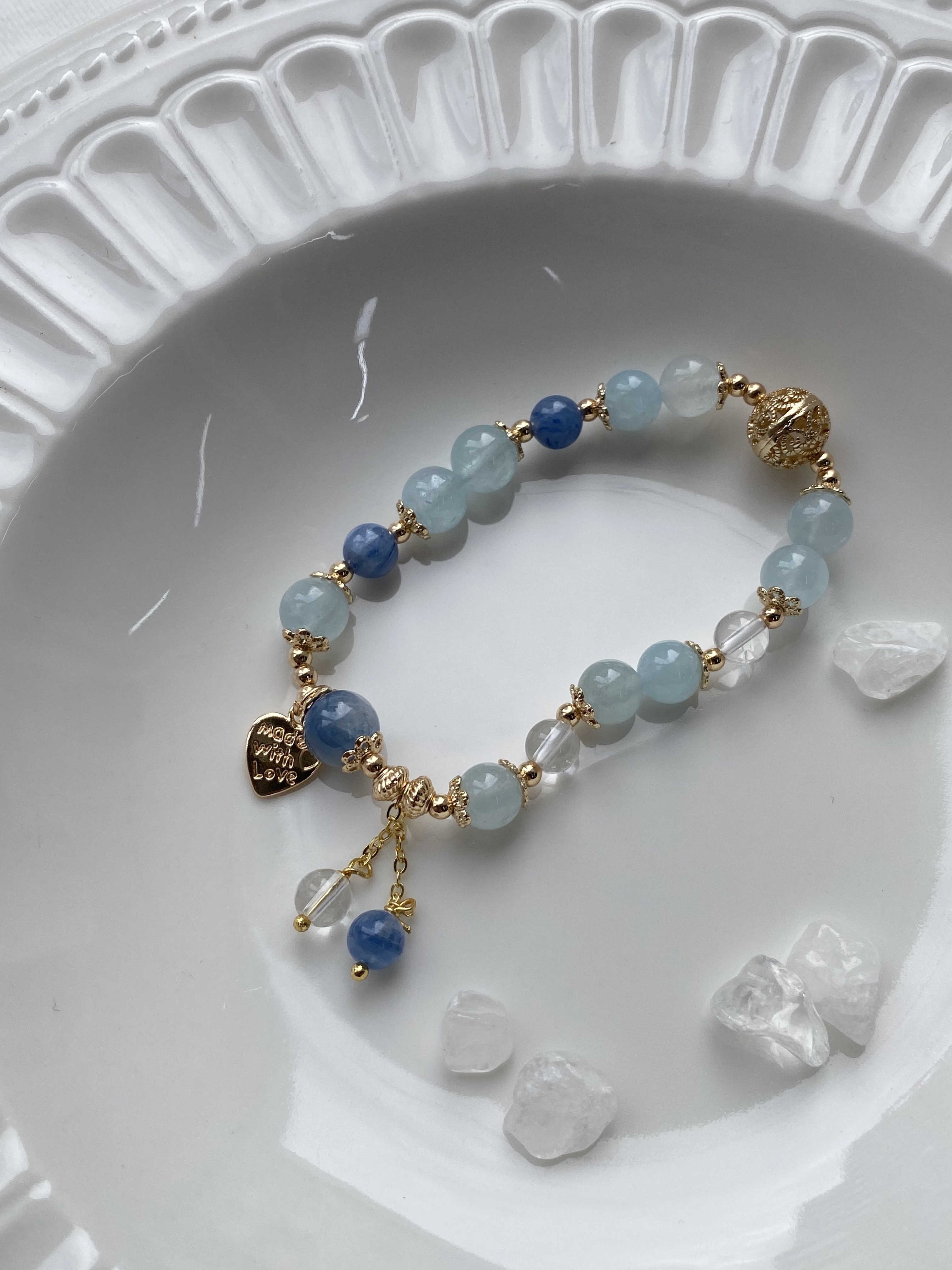 材質: 海藍寶雲霧 / 白水晶 / 藍晶石雲霧
