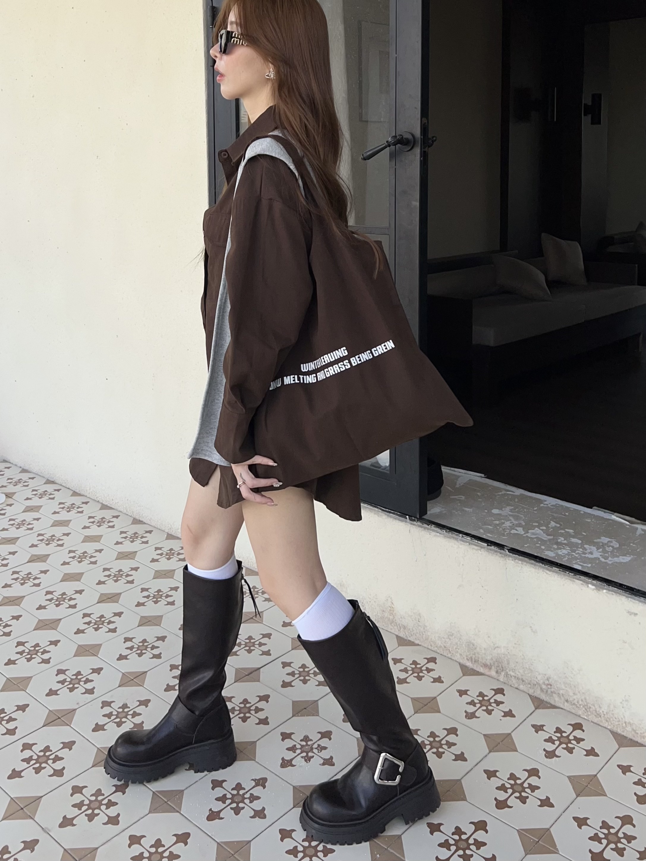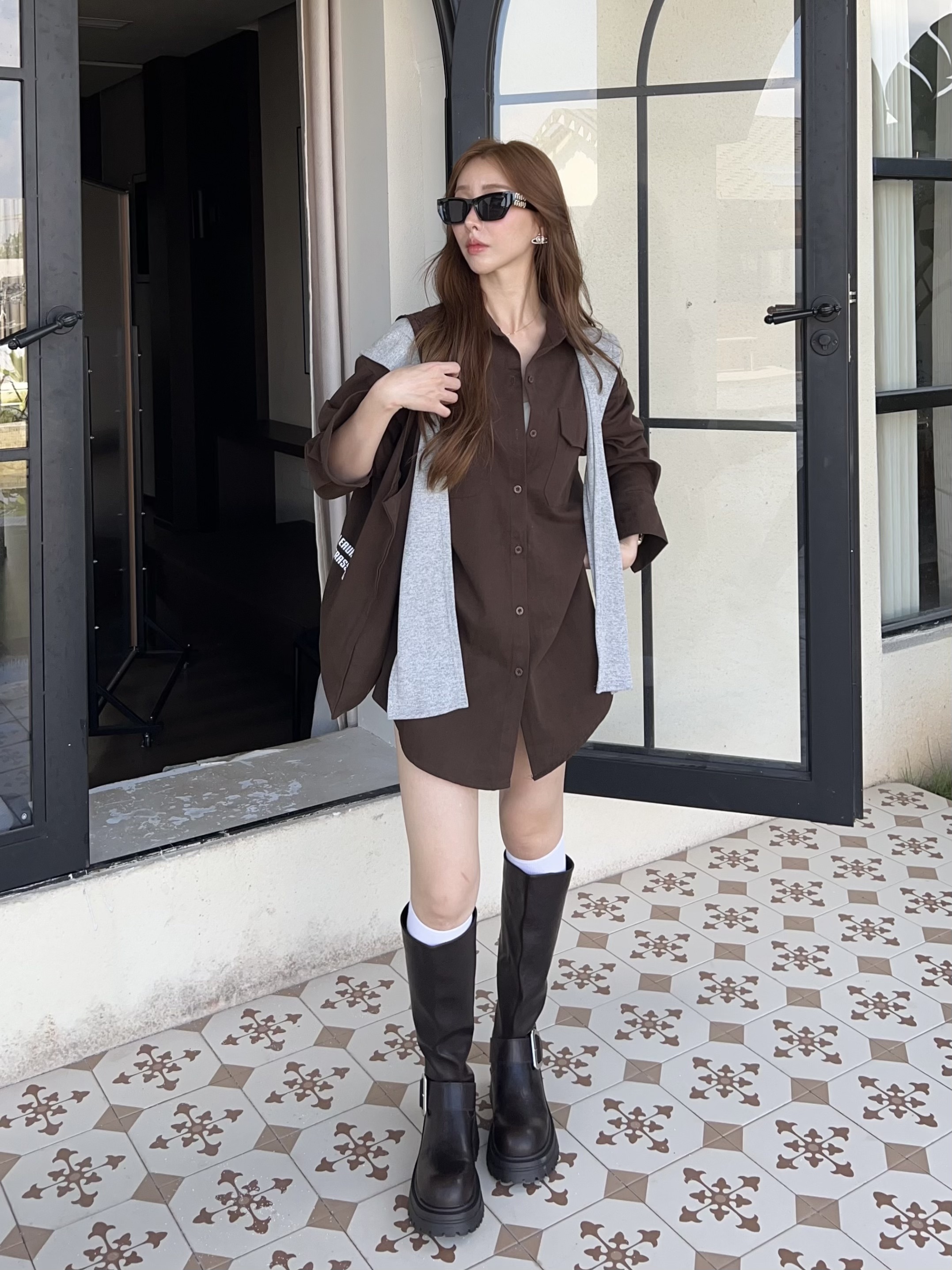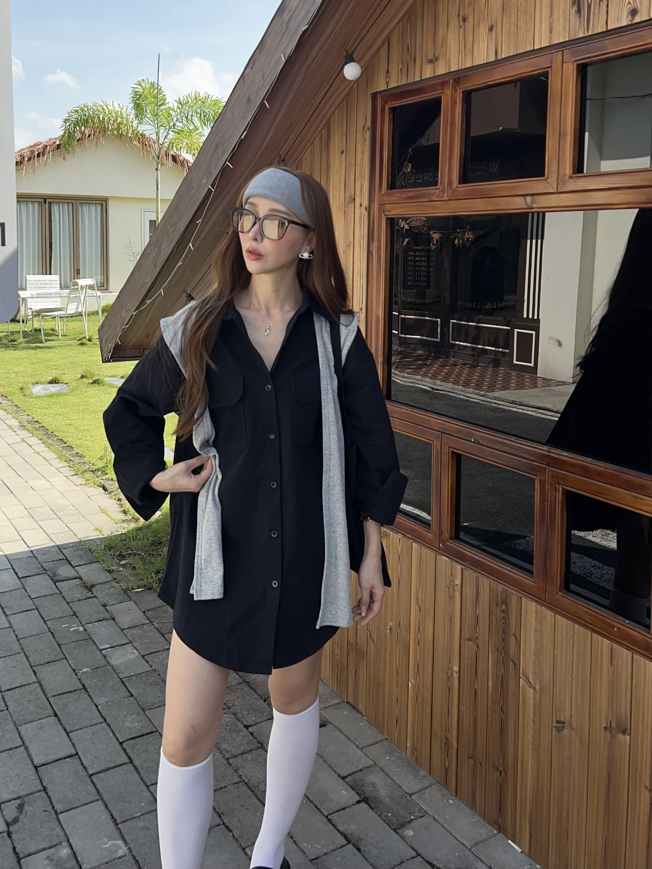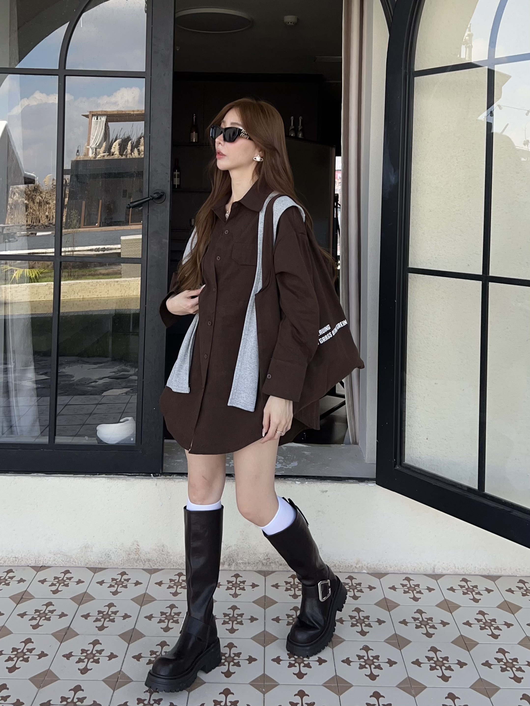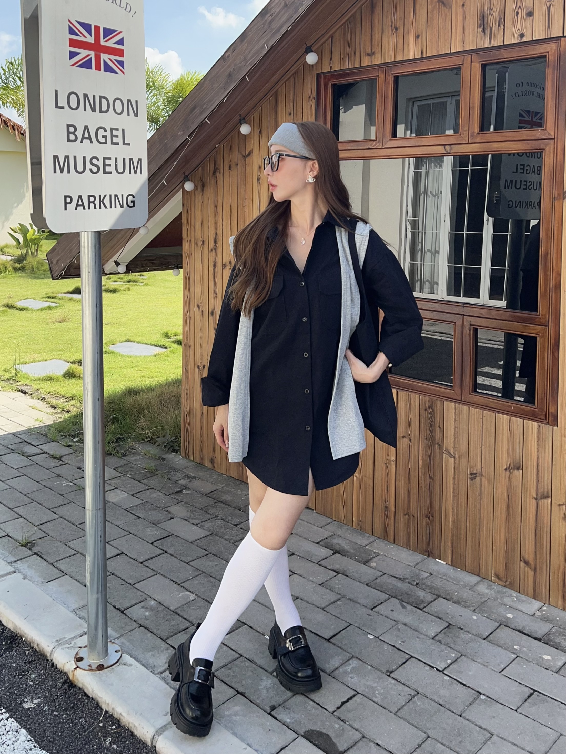 厚挺料襯衫+同色披肩+帆布包,一套搞定出門煩惱✨