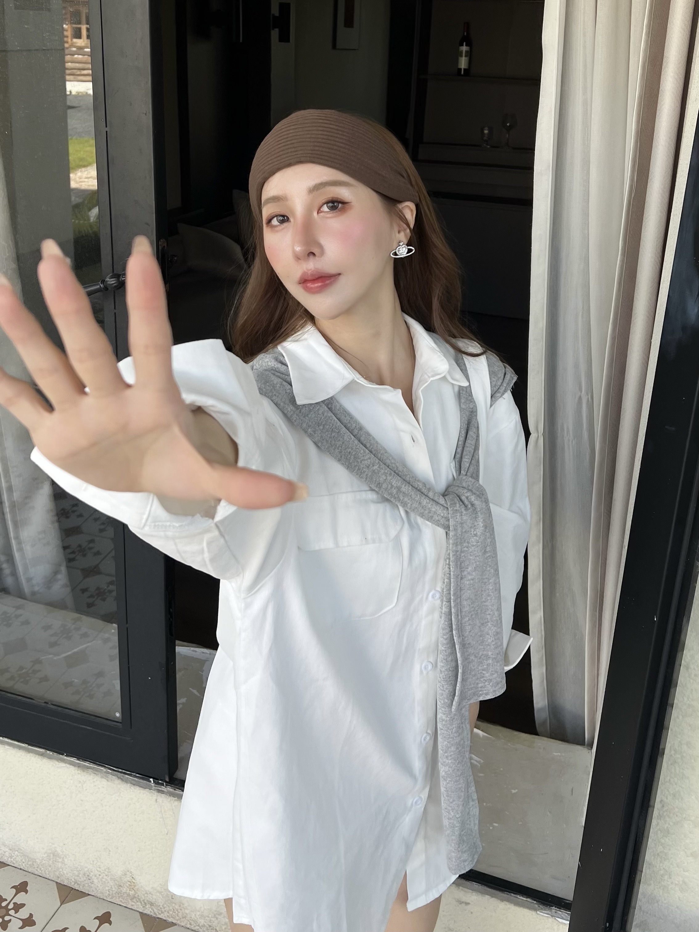 襯衫挺度剛好,不貼膚也不皺,搭上披肩立刻有層次感~