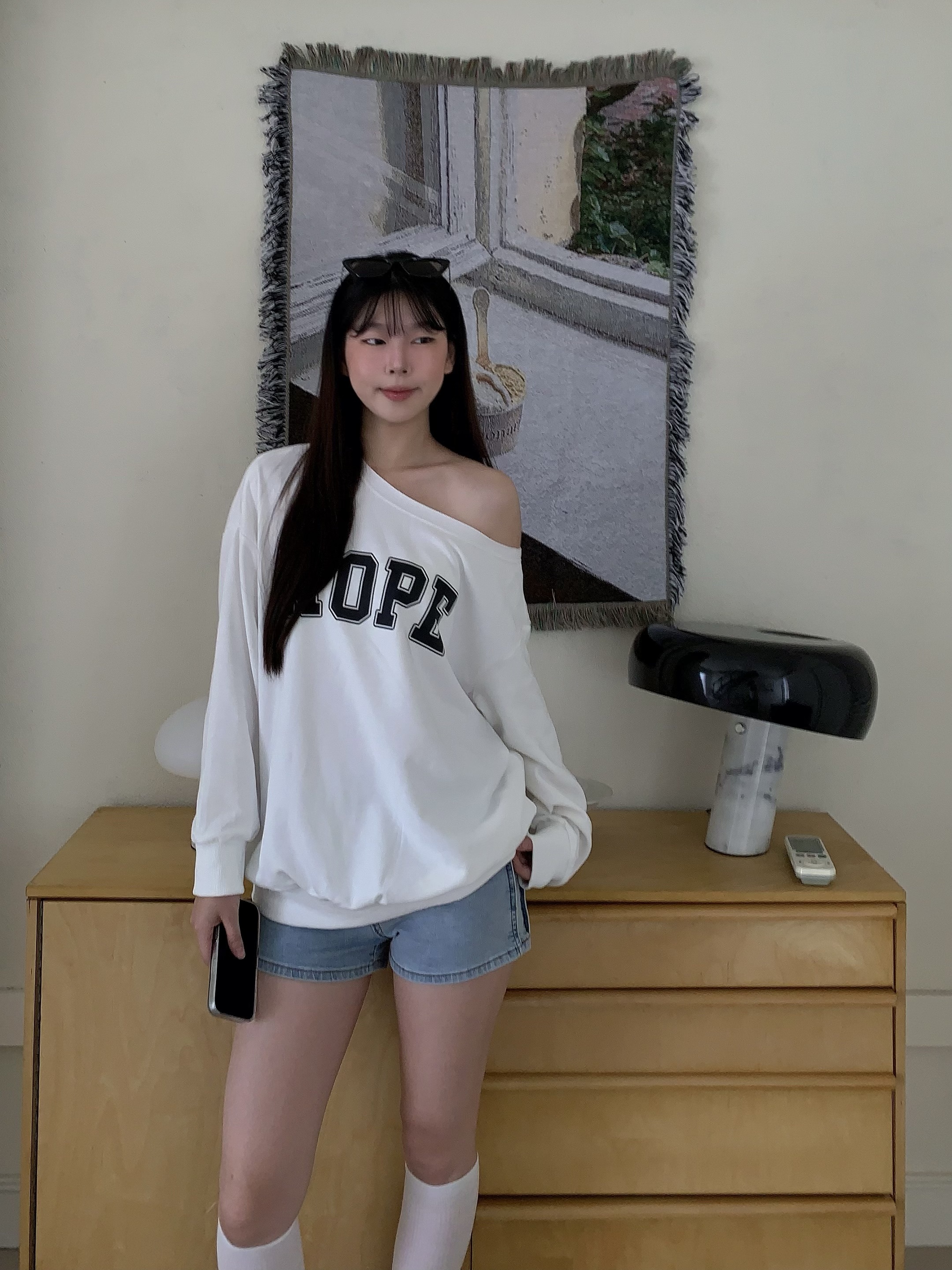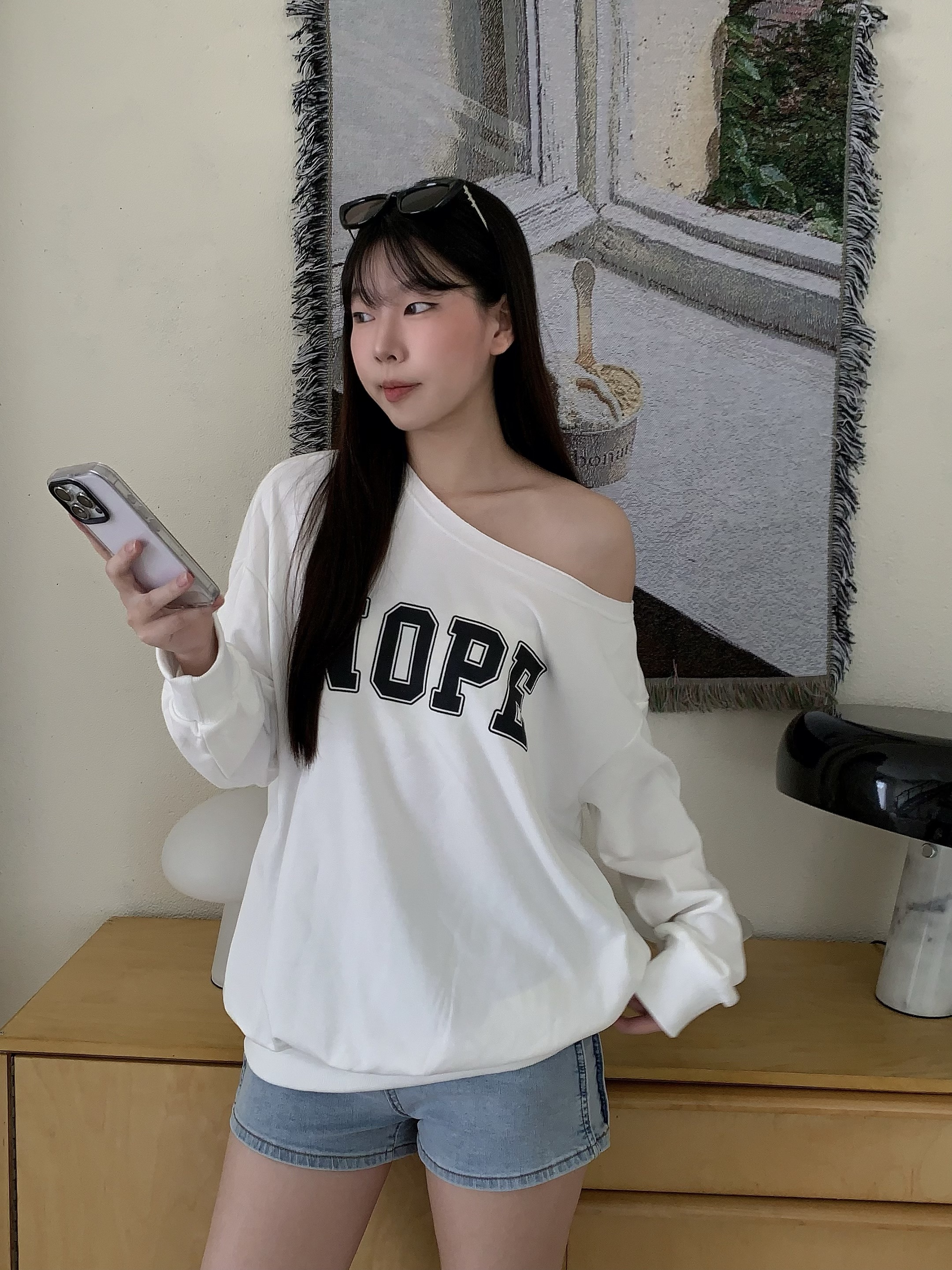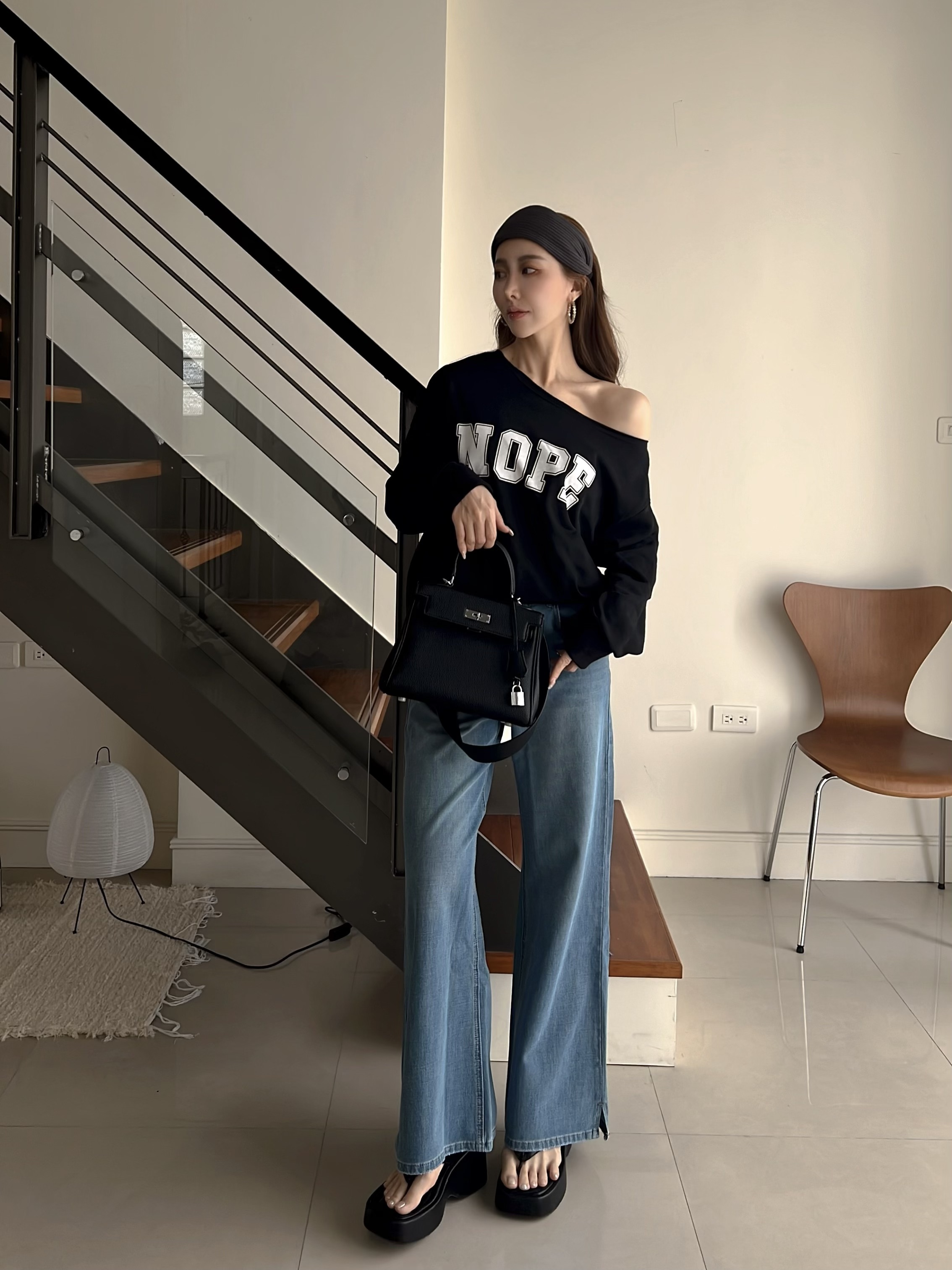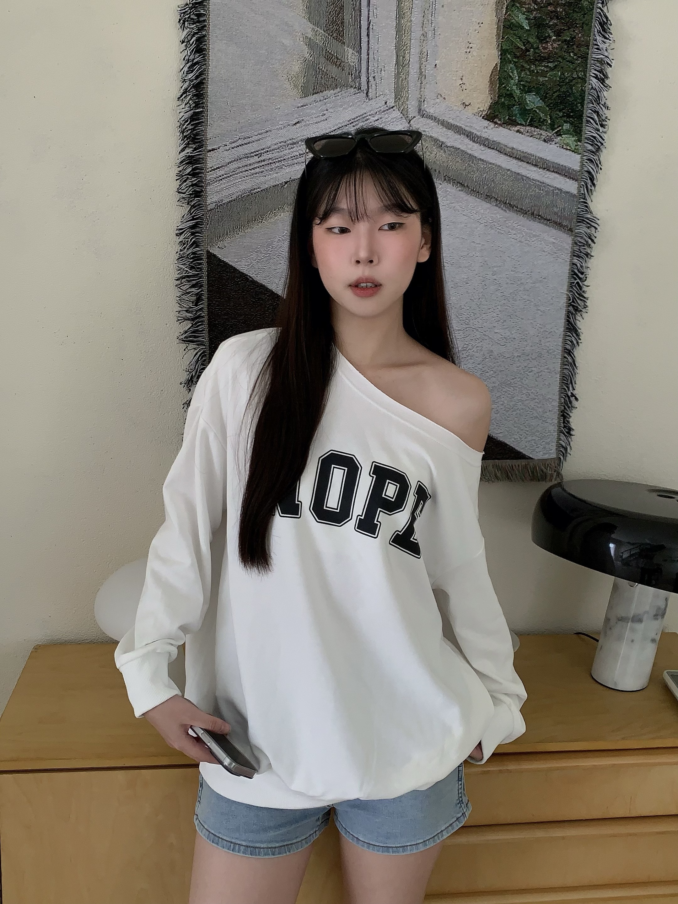 寬鬆落肩剪裁 + 斜肩設計,完美展現慵懶氣質~