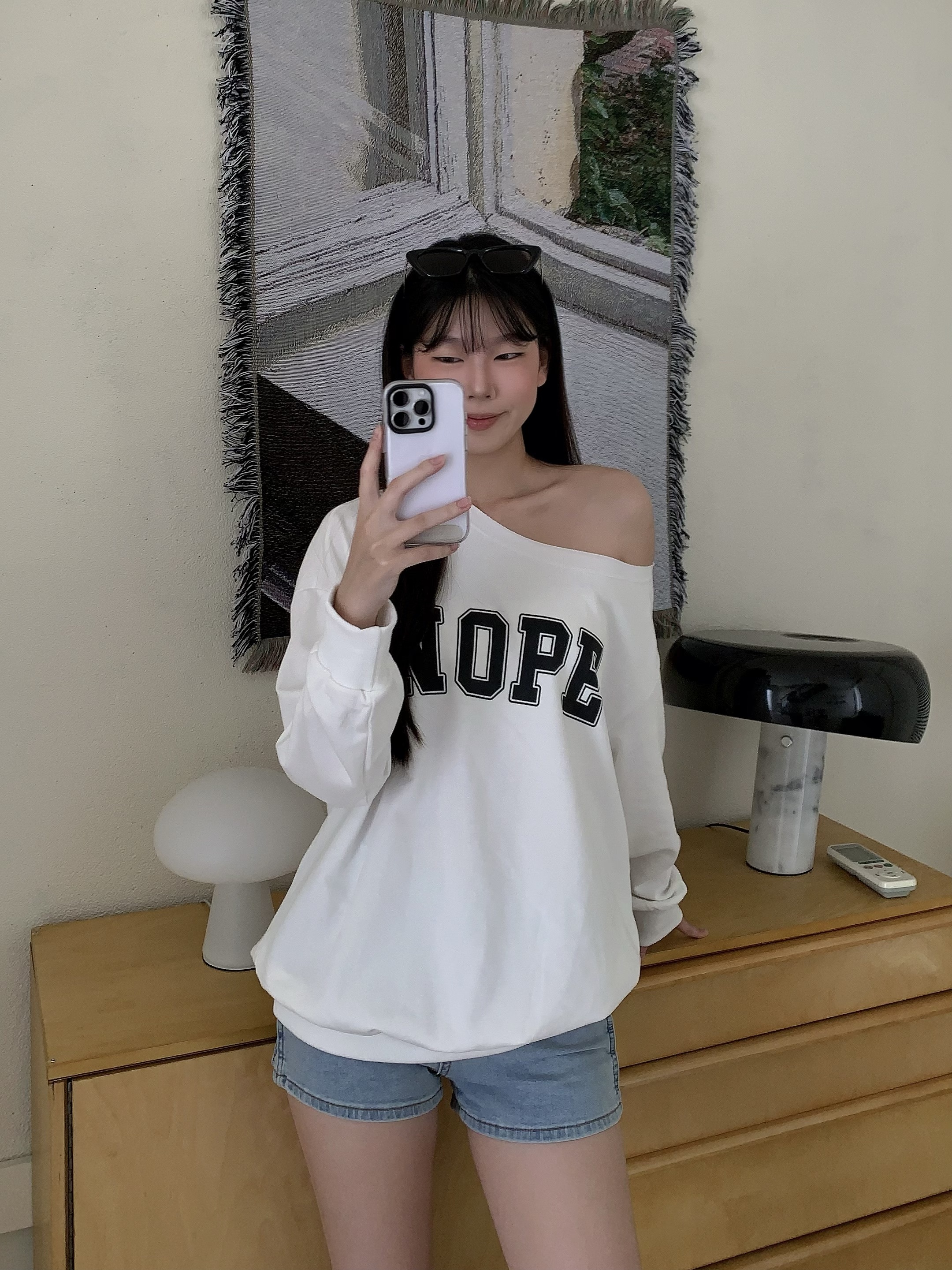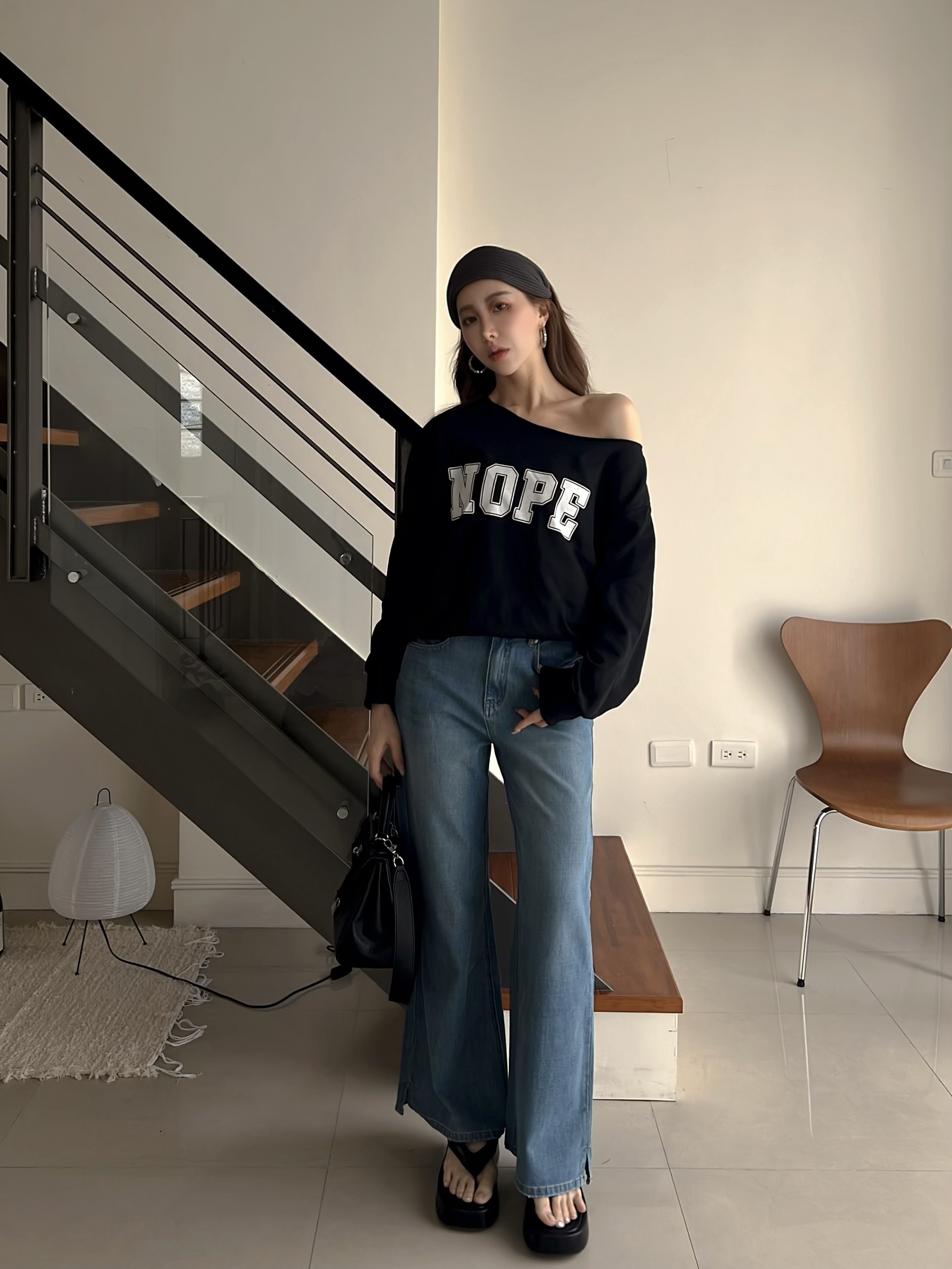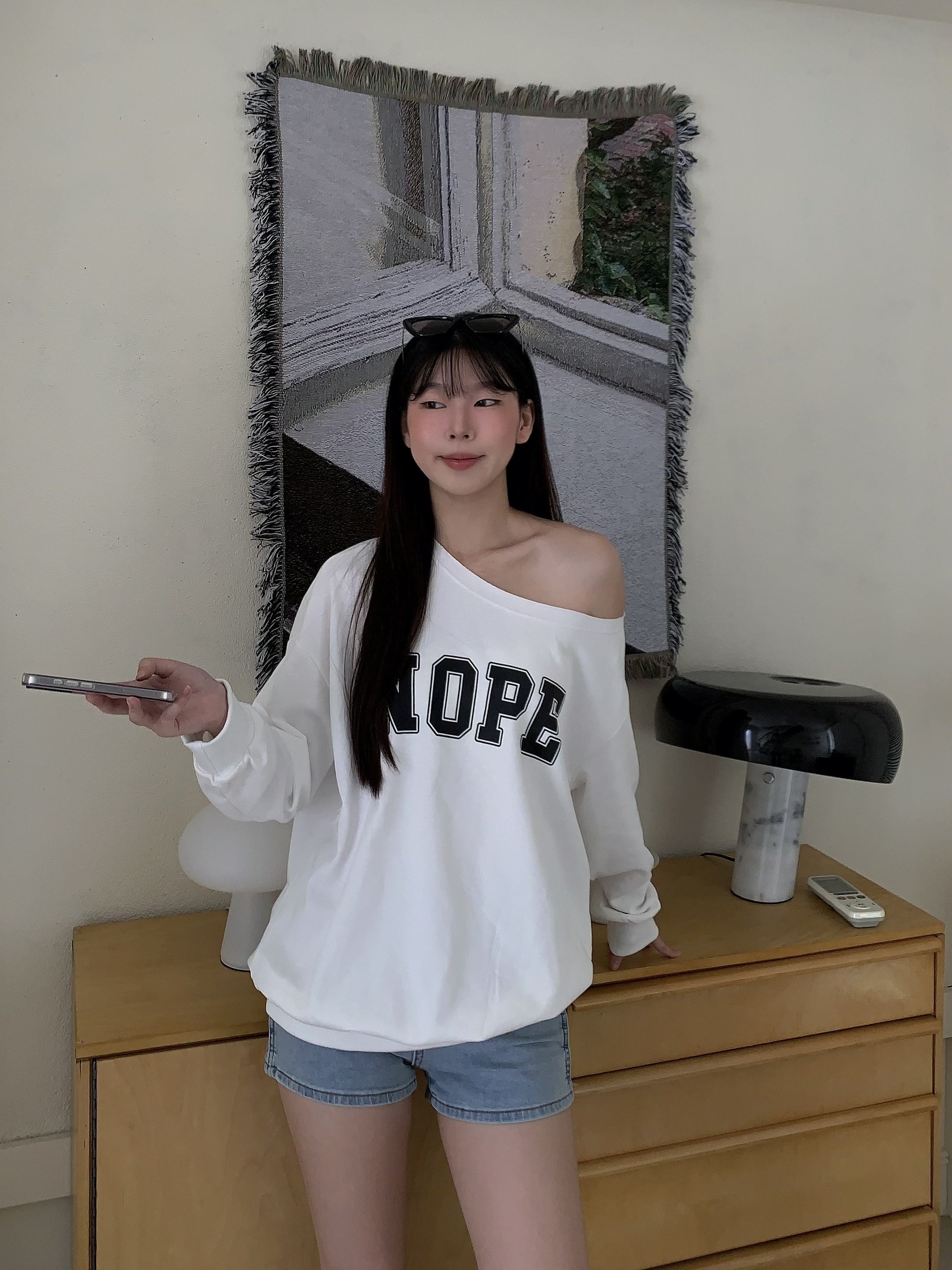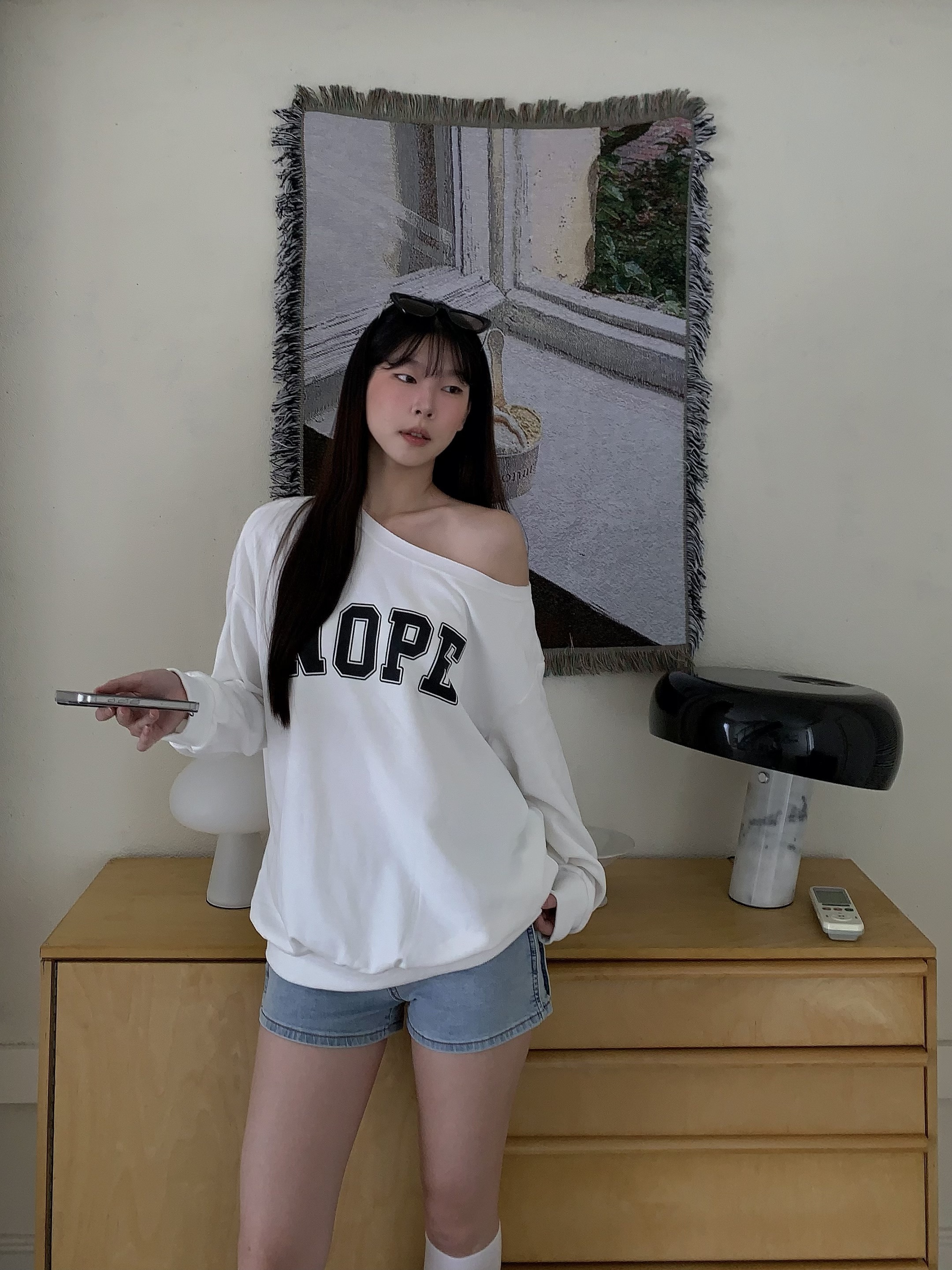 寬鬆落肩剪裁 + 斜肩設計,完美展現慵懶氣質~