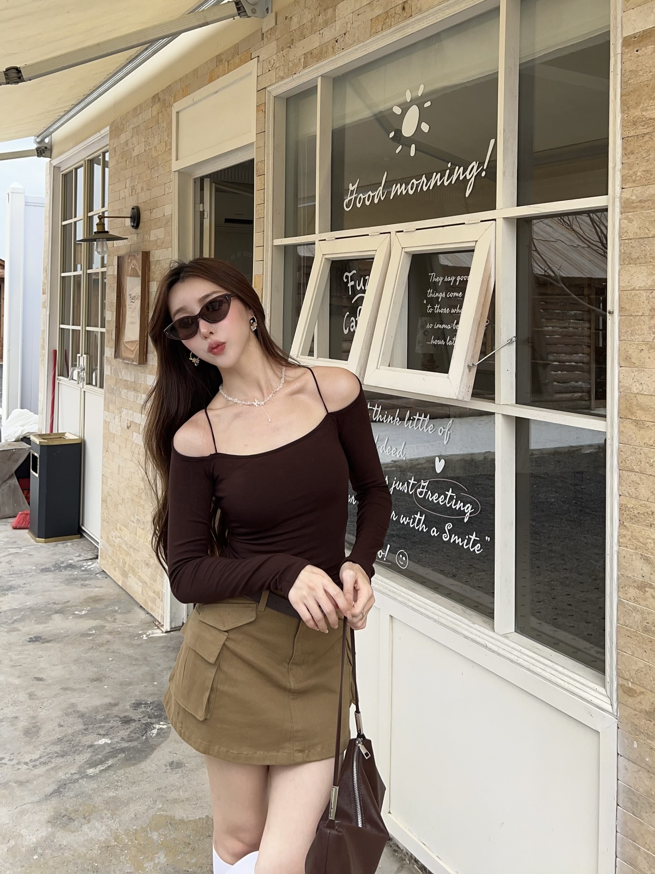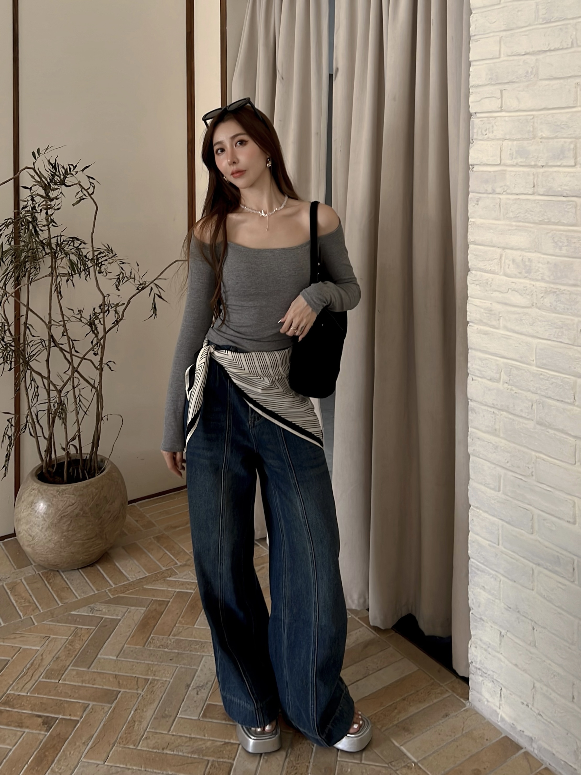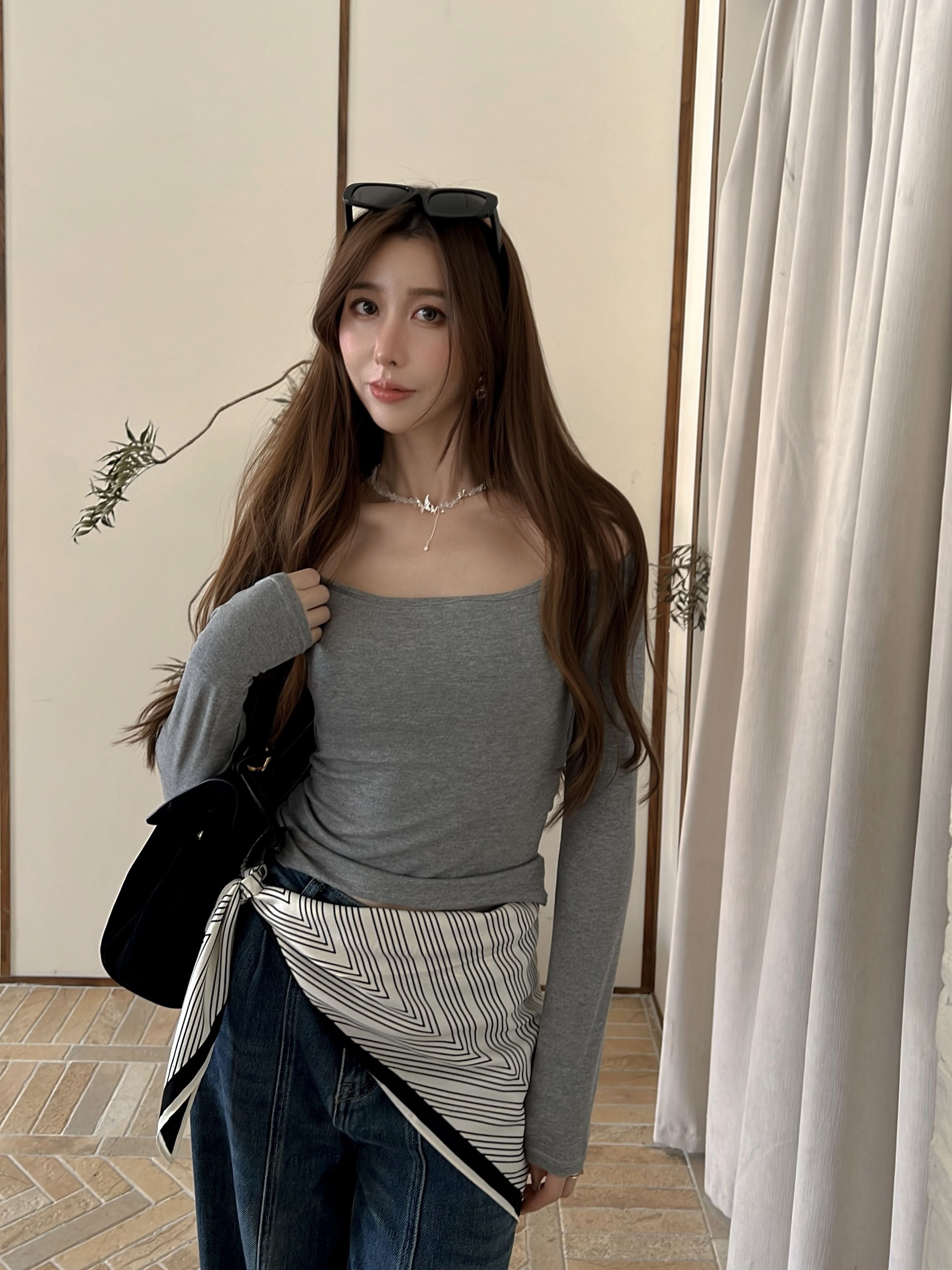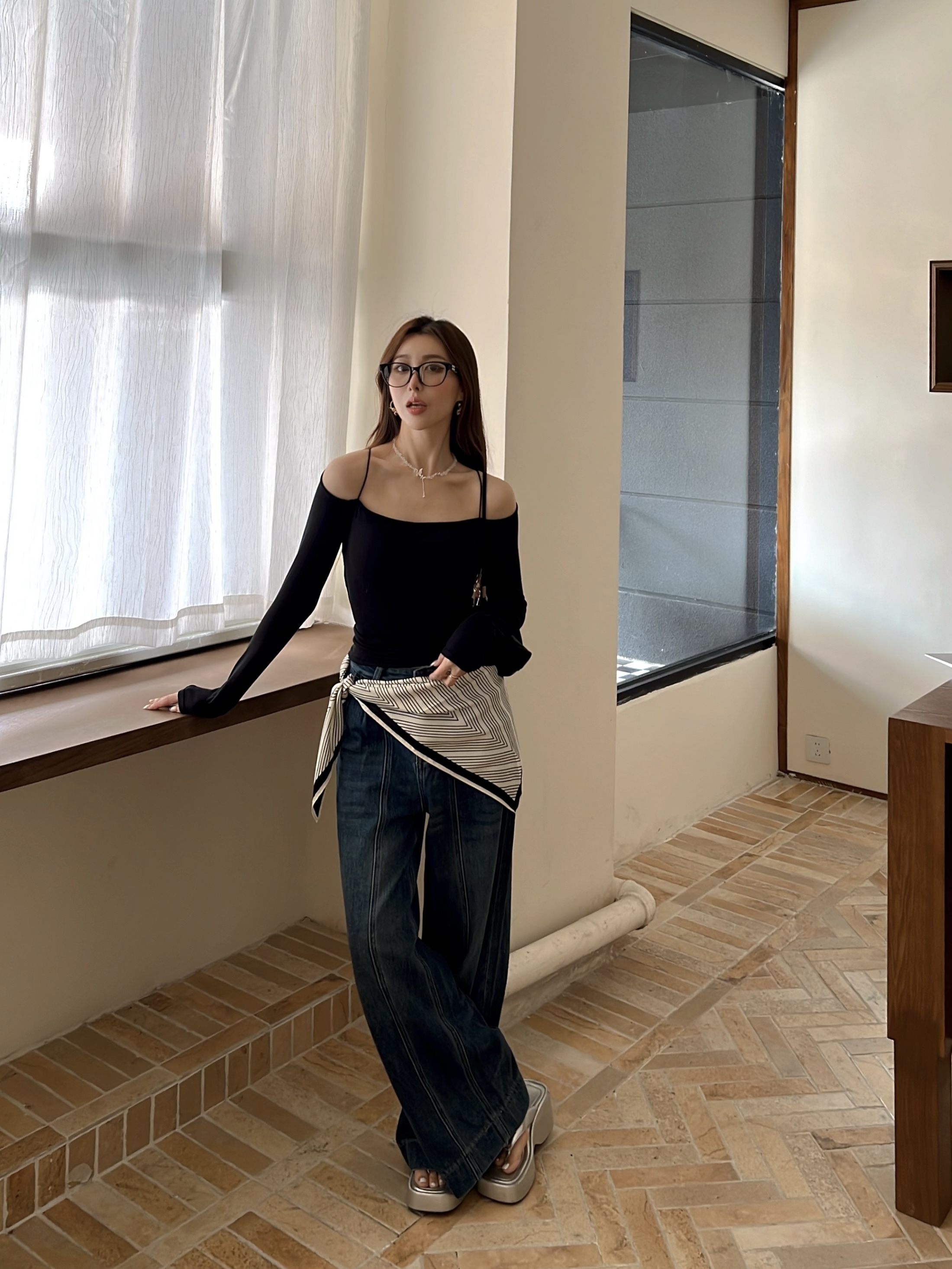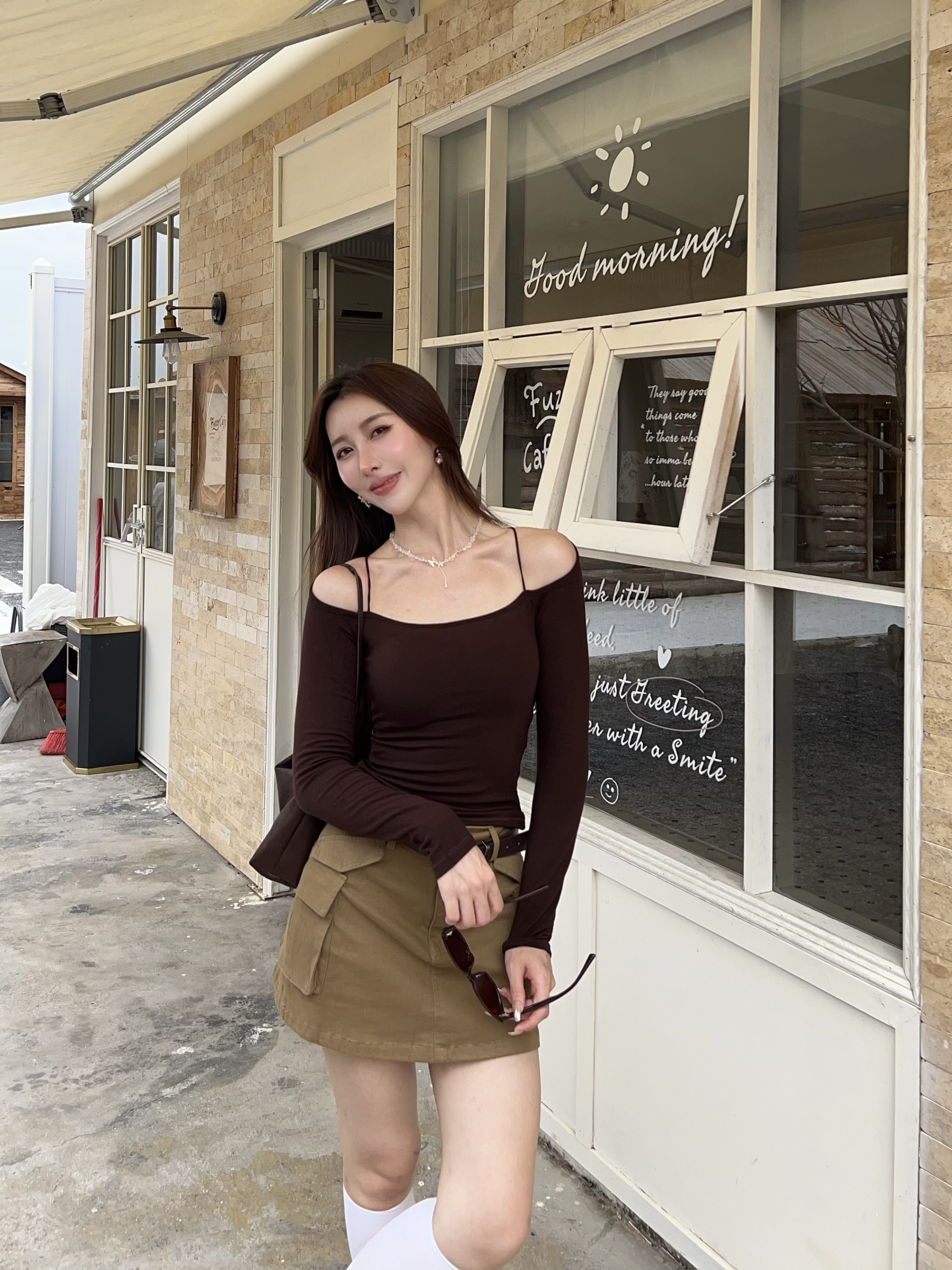 細肩帶長袖 ➝ 微辣露肩感,增添慵懶魅力