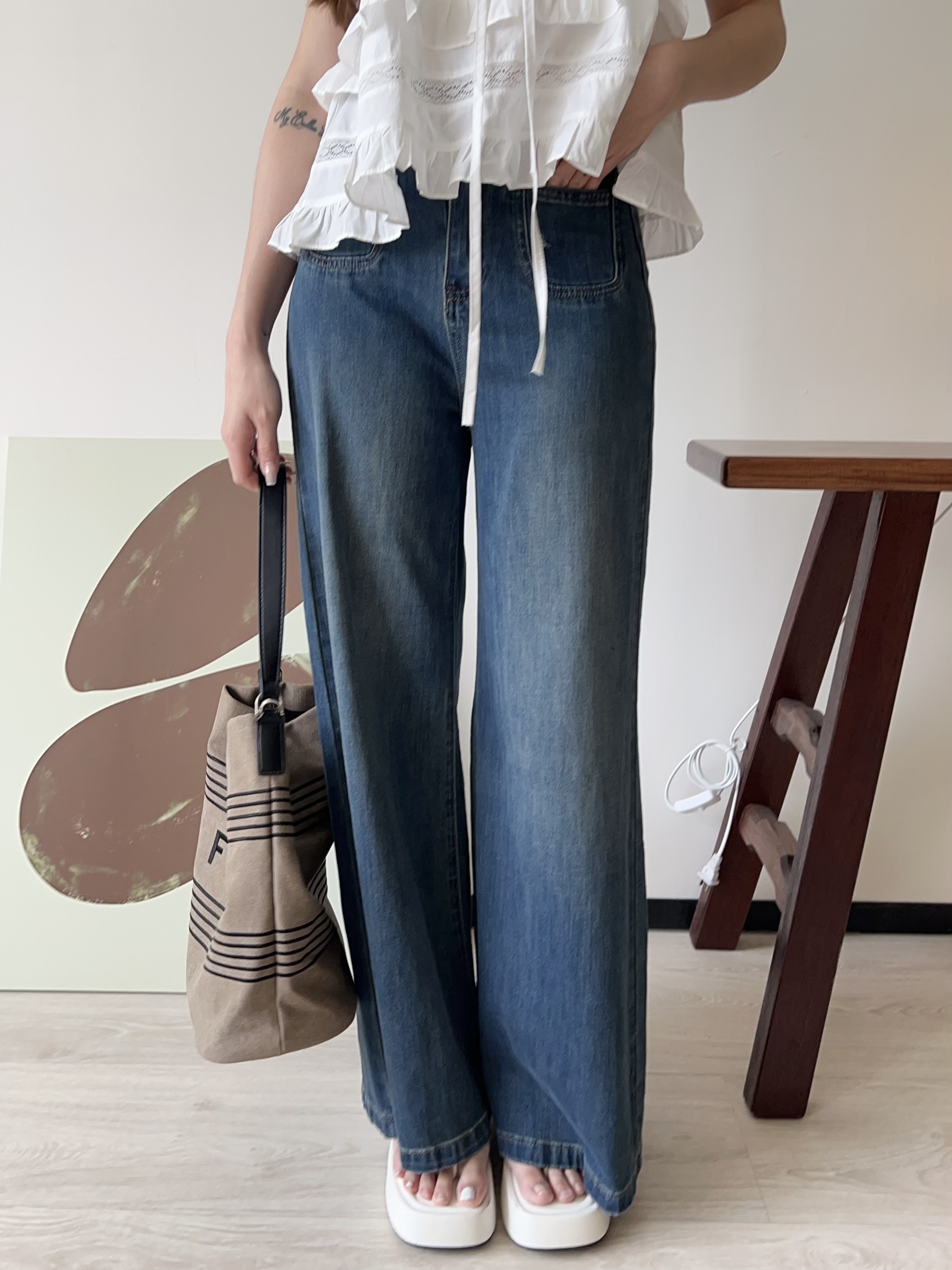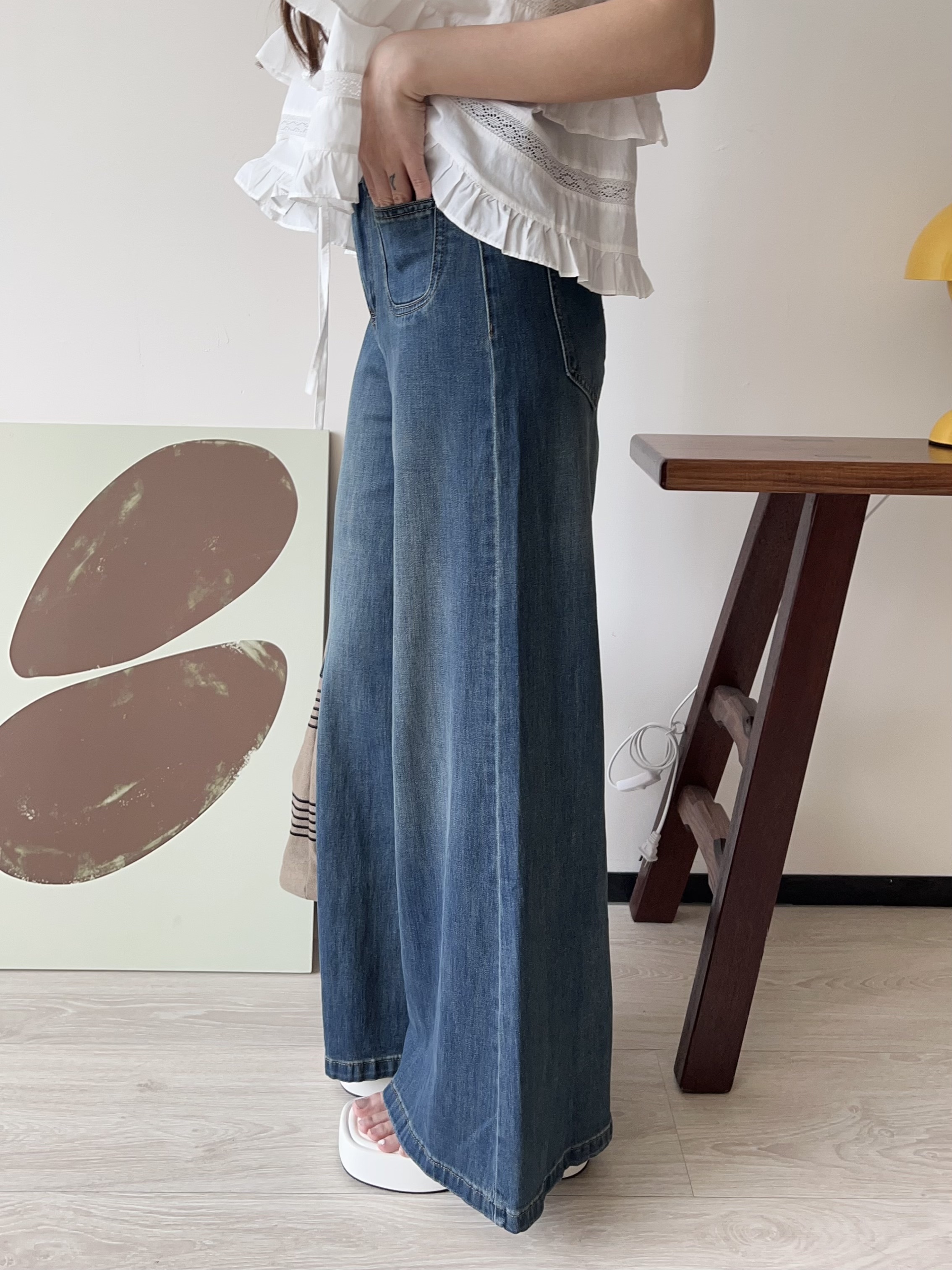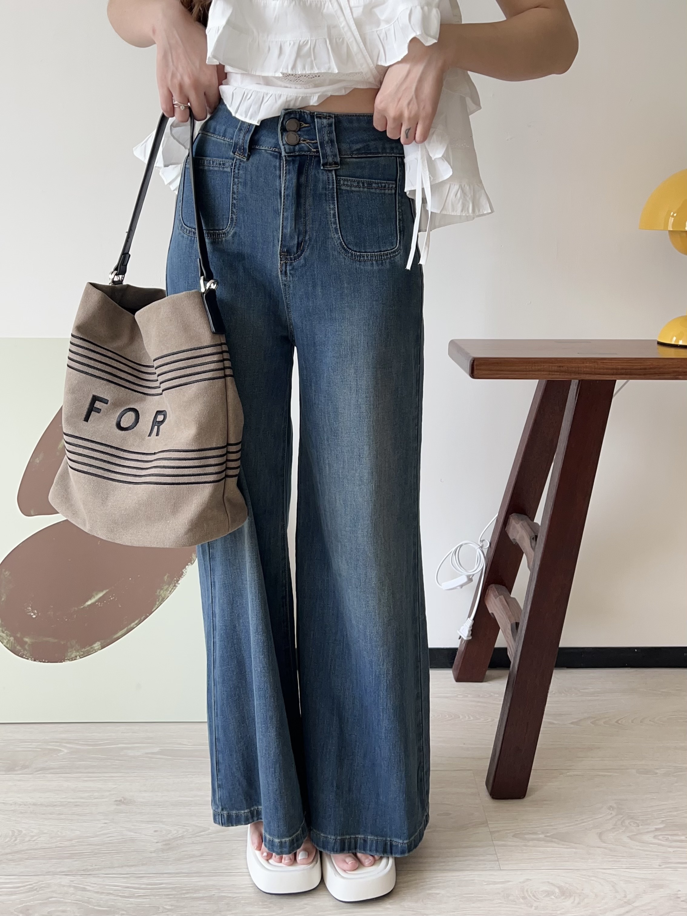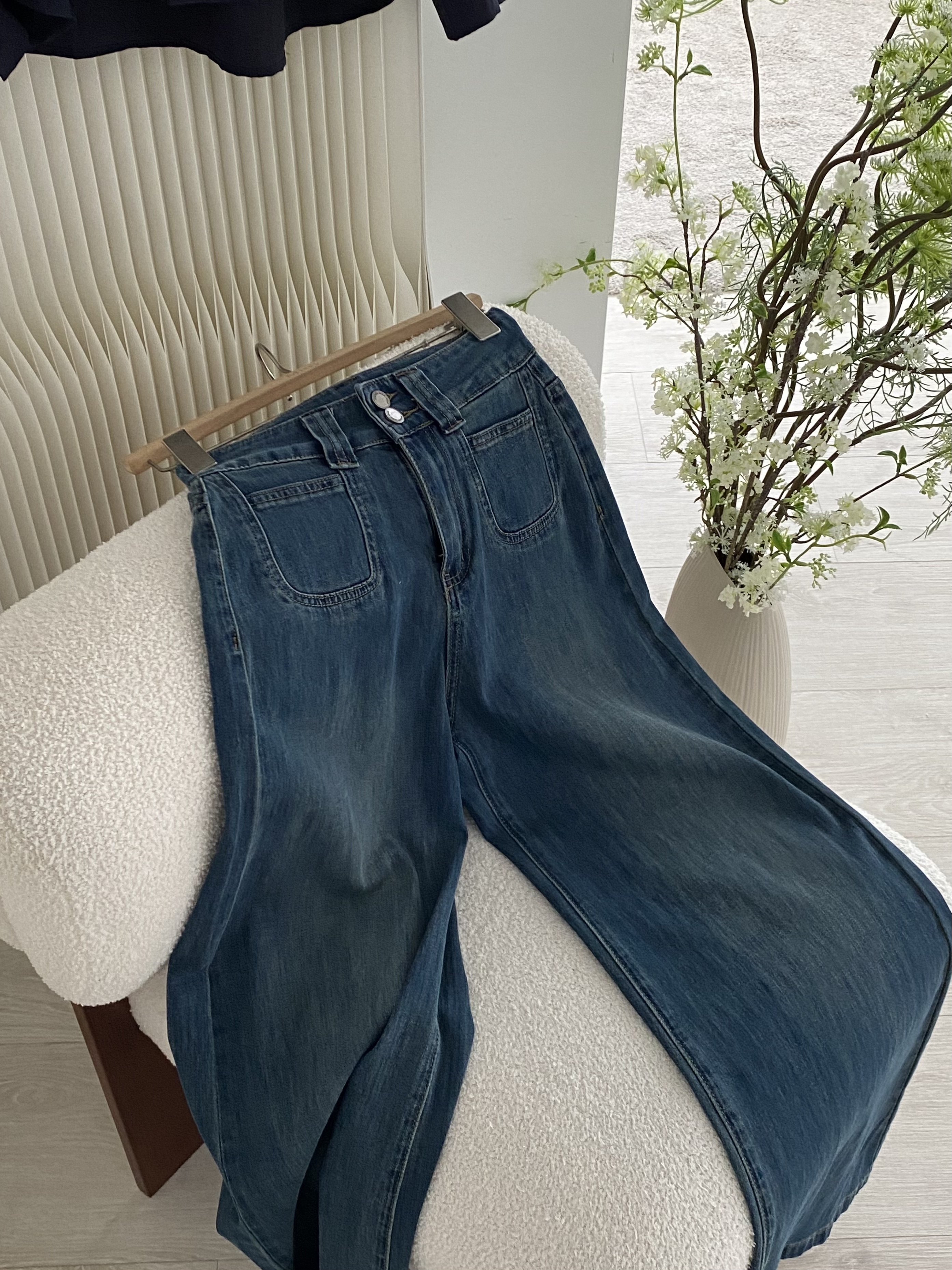 💙 復古刷色牛仔 ➝ 帶點做舊感,落地大寬褲版型