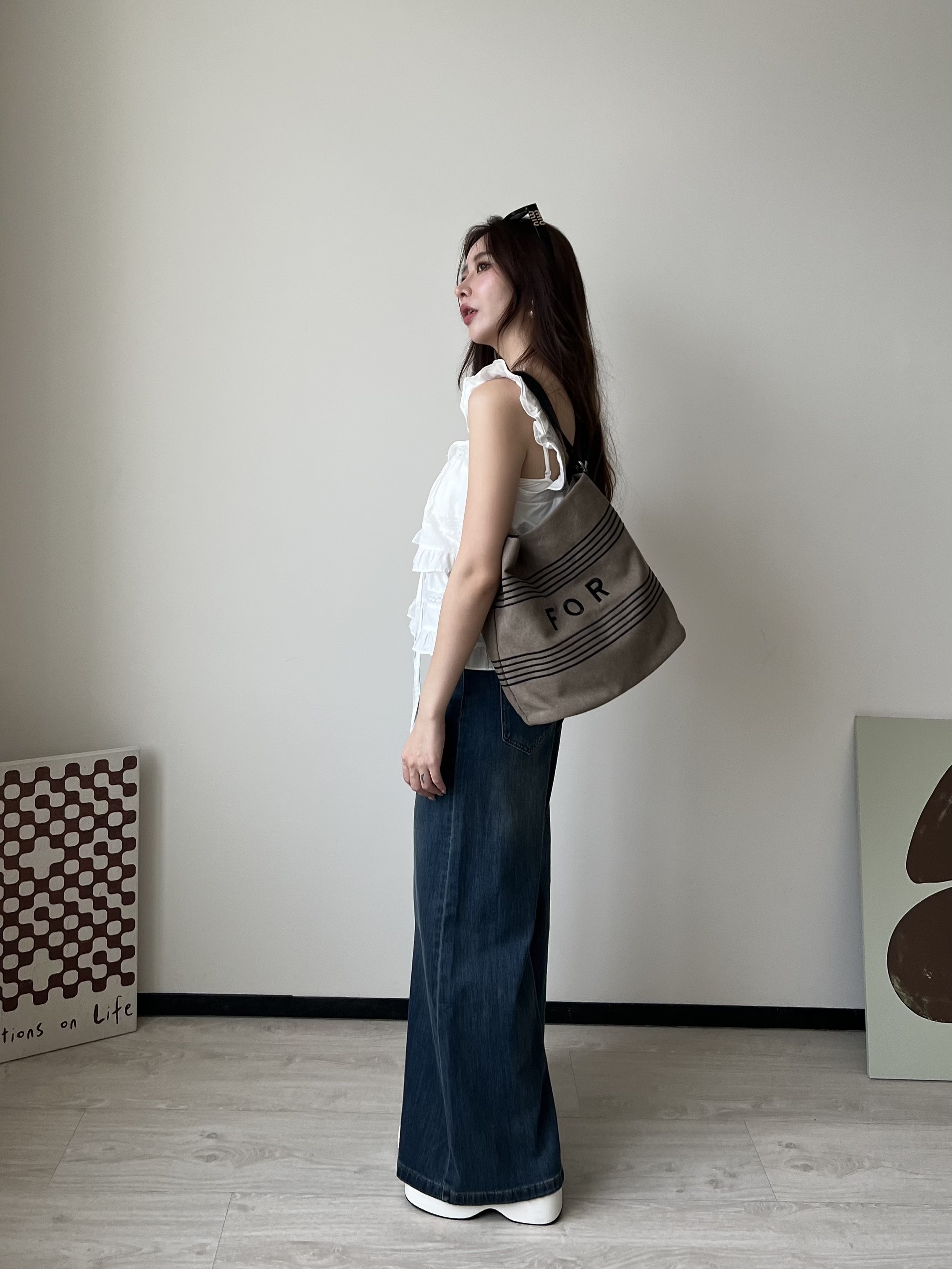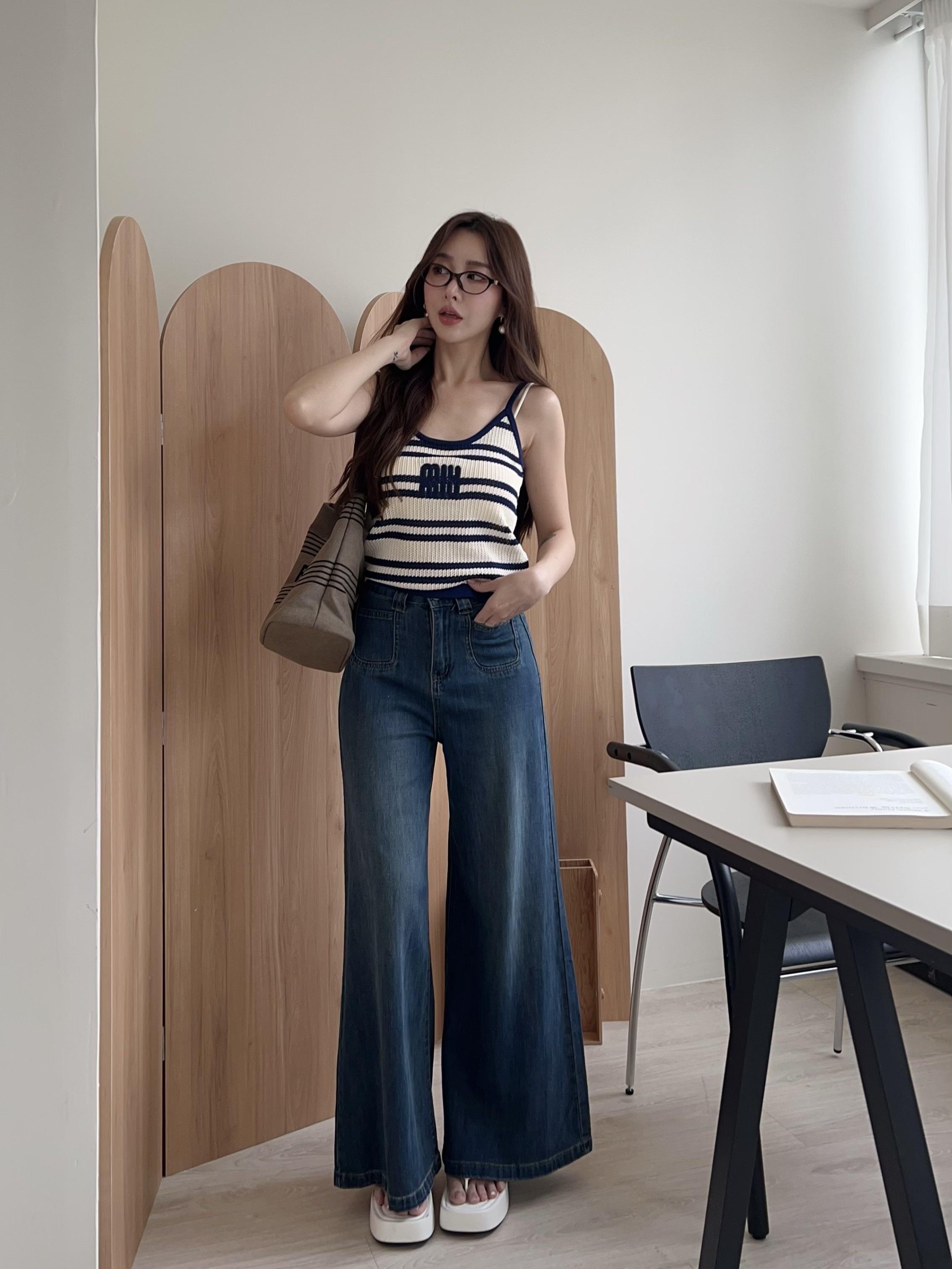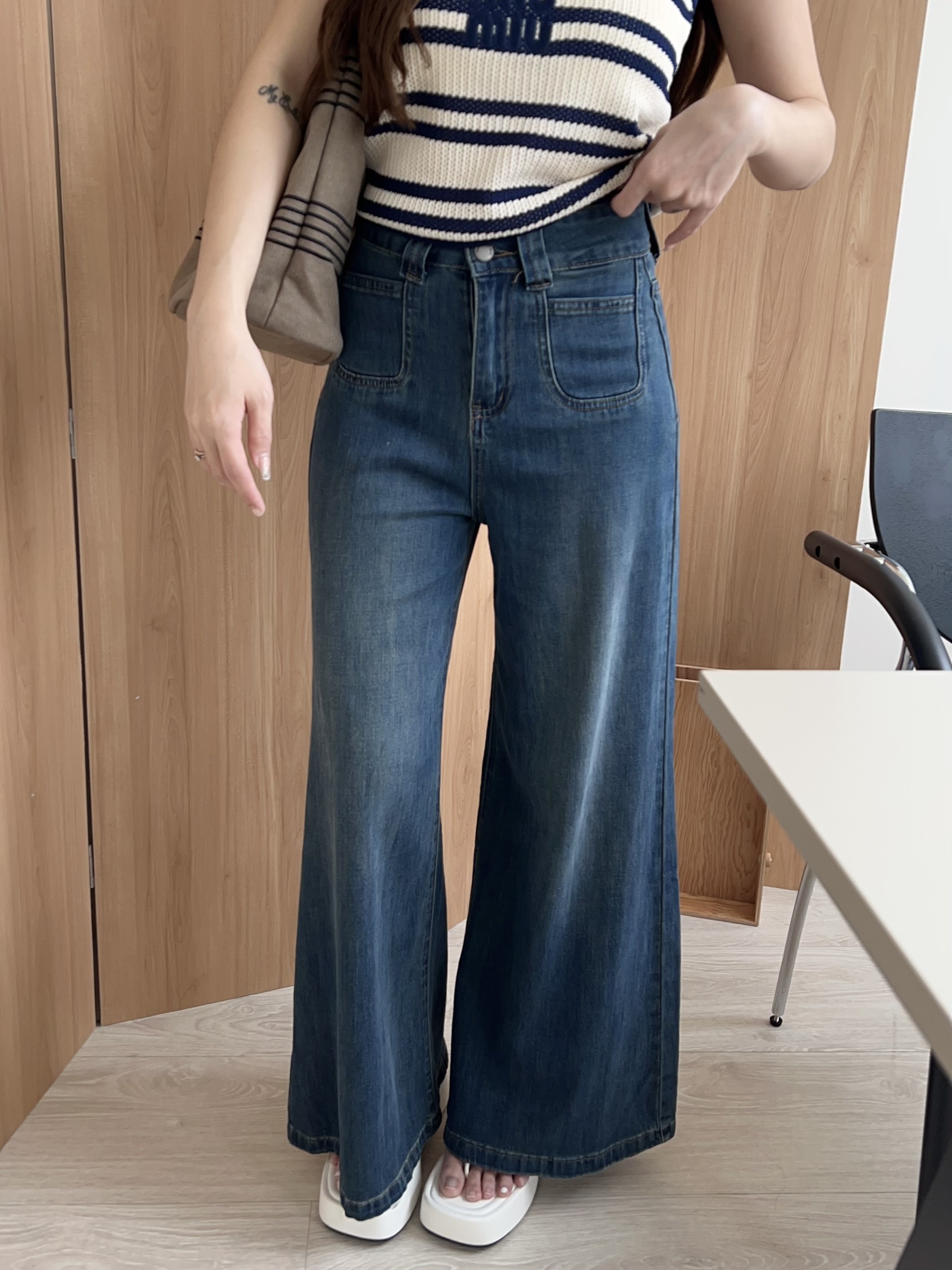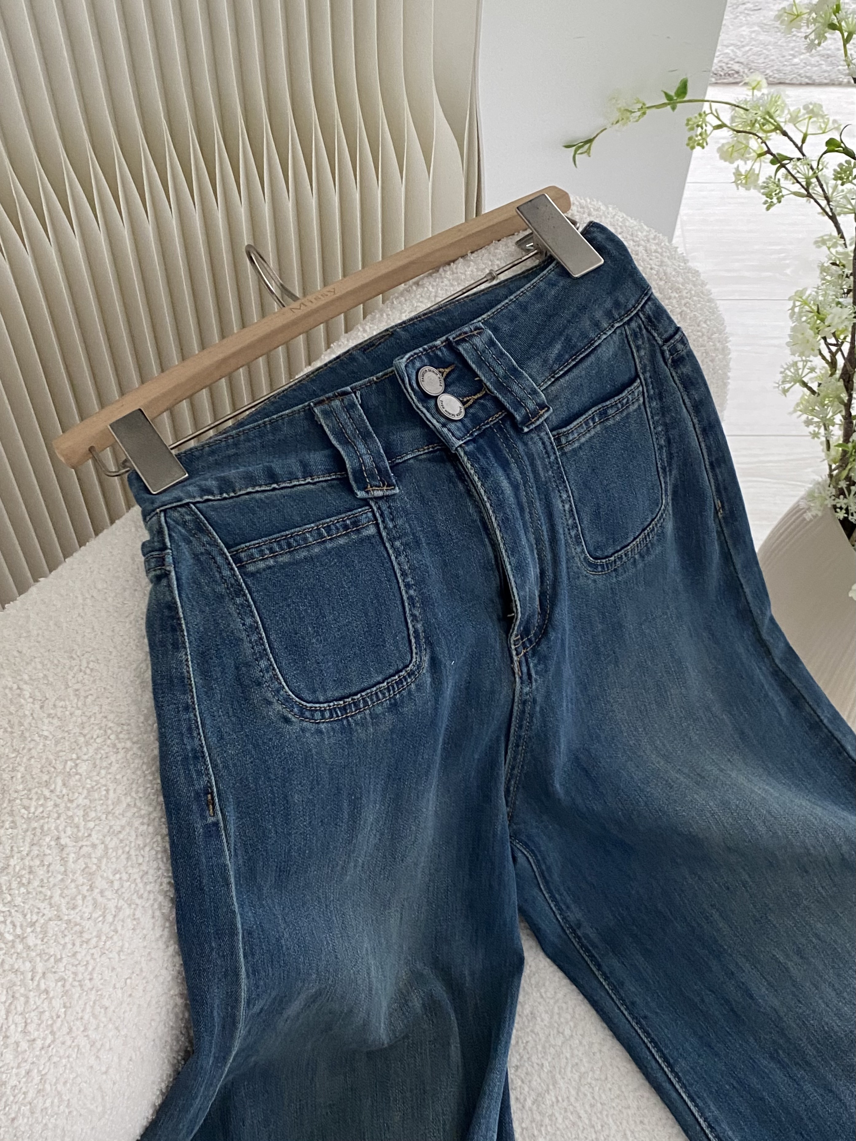 💙 復古刷色牛仔 ➝ 帶點做舊感,落地大寬褲版型